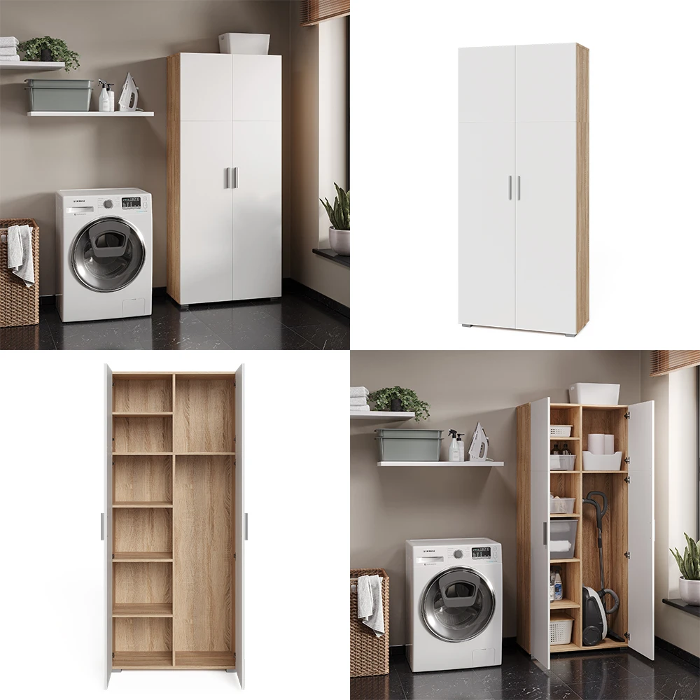- MATERIAL: Der Mehrzweckschrank besteht aus pflegeleichter Spanplatte 16 mm, mit einer Melaminharzbeschichtung.