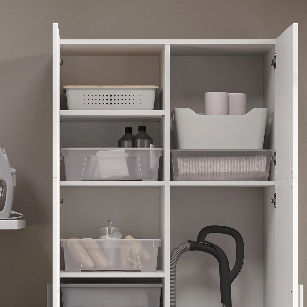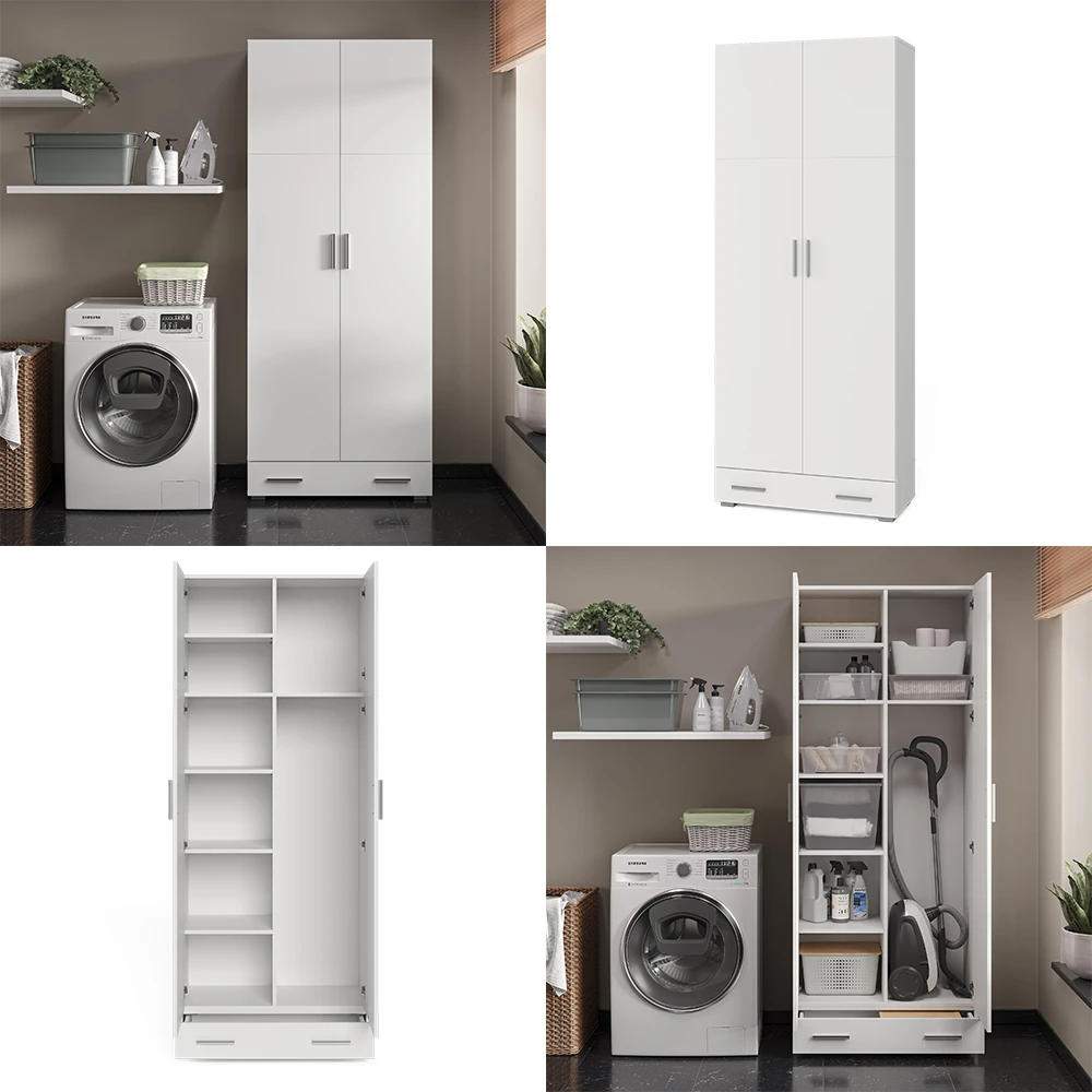 - MATERIAL: Der Mehrzweckschrank besteht aus pflegeleichter Spanplatte 16 mm, mit einer Melaminharzbeschichtung.