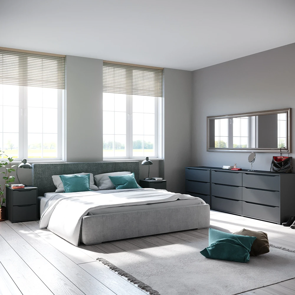 Das Sideboard Ruben ist das perfekte Möbelstück für alle, die Wert auf ein minimalistisches Design und viel Stauraum legen. Das Modell ist Teil der Ruben-Serie und bietet zahlreiche Optionen für jeden Raum. Ob als Kommode mit Schubladen, Kommodenschrank oder Anrichte – das Sideboard ist ein wahrer Allrounder für Wohn- und Schlafzimmer. Die Schubladen sind geräumig und bieten ausreichend Platz für Kleidung, Wäsche, Unterlagen und vieles mehr. Dank der klaren Linienführung fügt sich das Sideboard nahtlos in jedes Raumkonzept ein und verleiht dem Ambiente einen edlen Touch. Mit dem Sideboard Ruben bringen Sie nicht nur Ordnung in Ihr Zuhause, sondern auch zeitlose Eleganz.