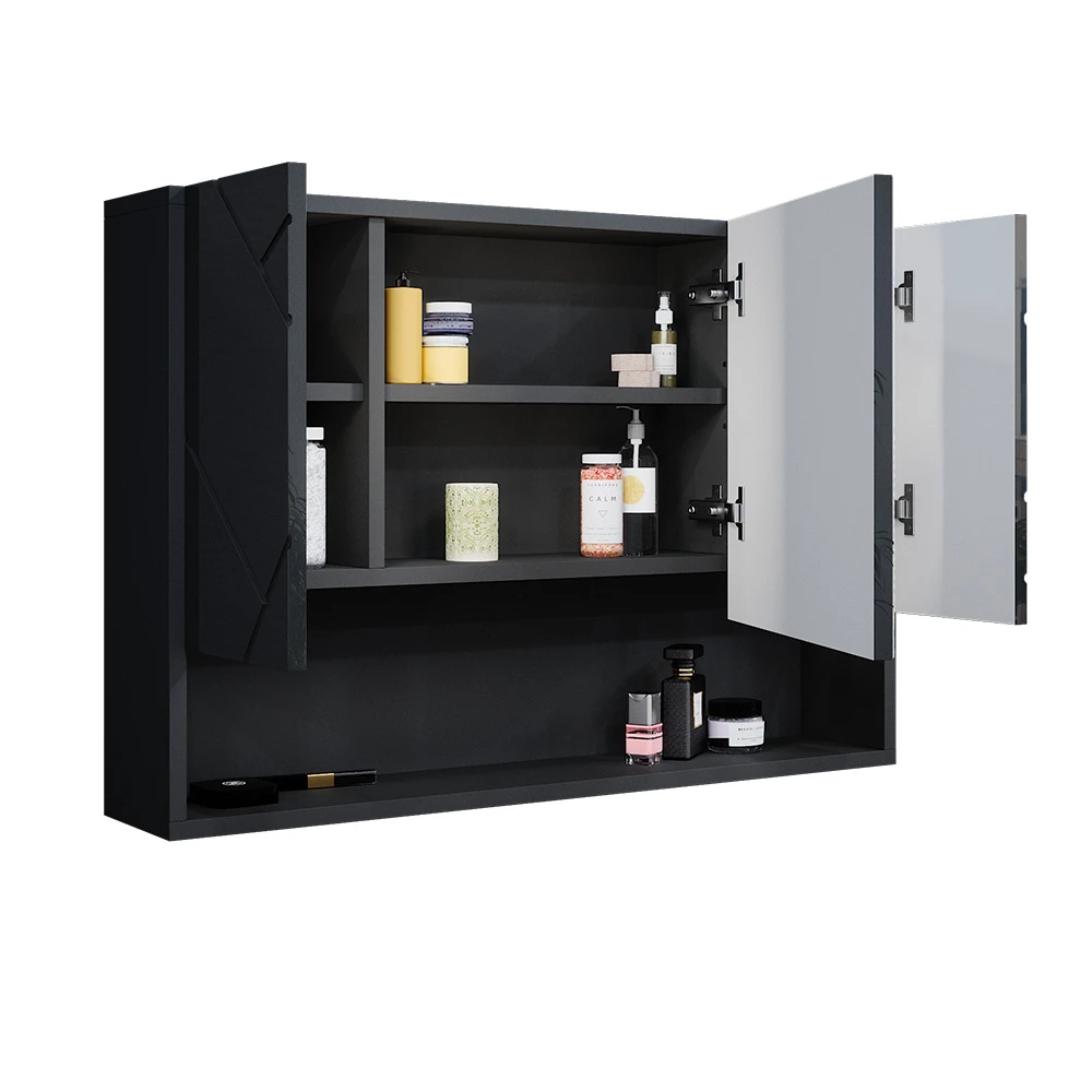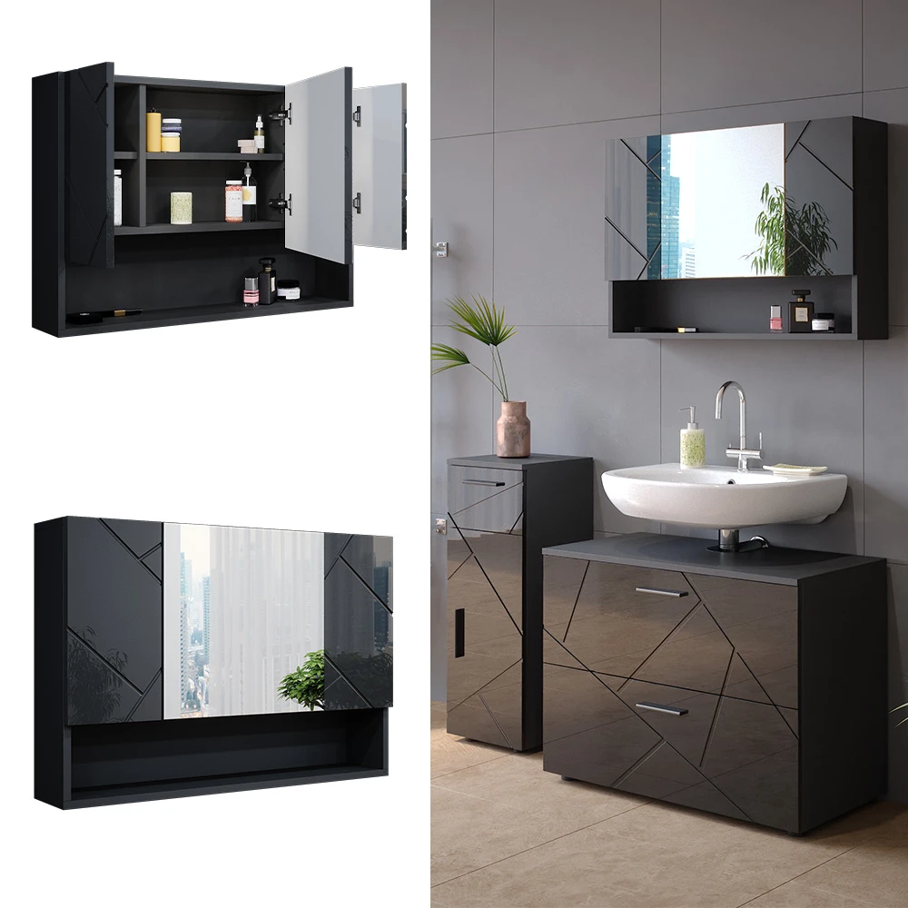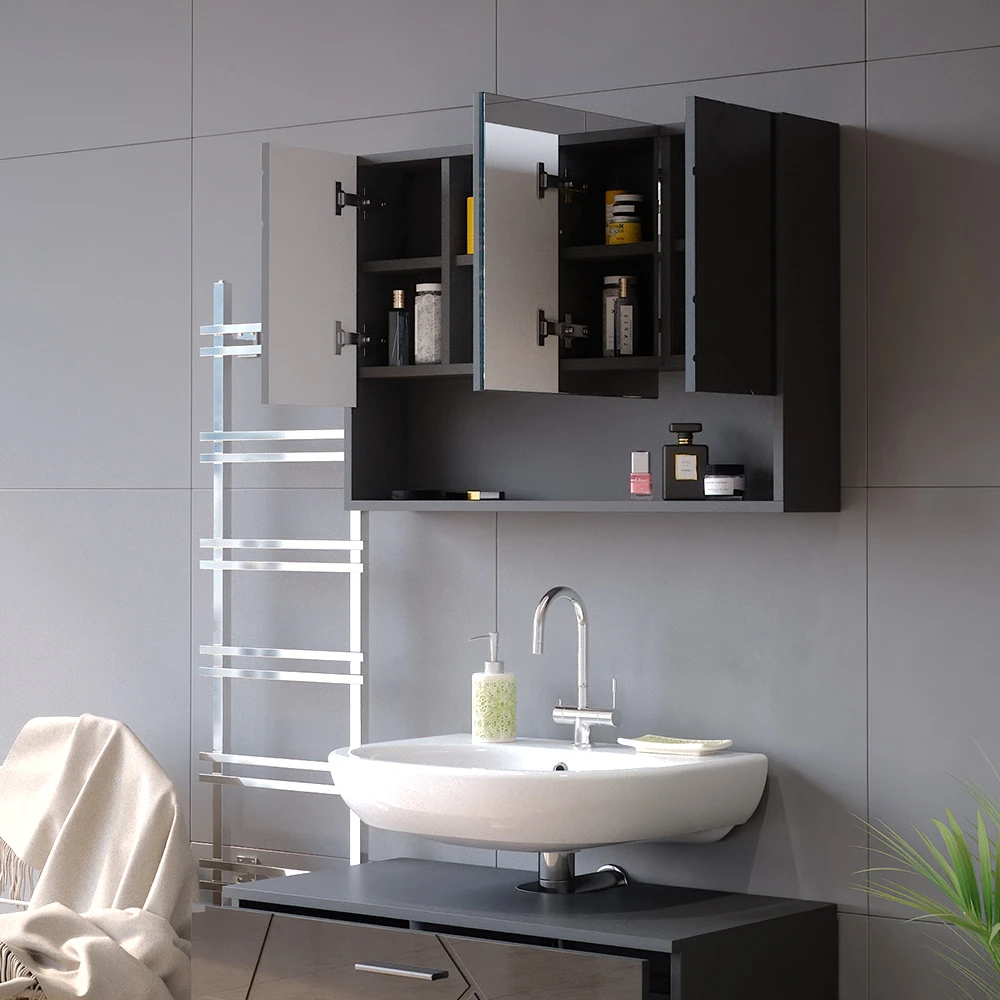 - MATERIAL: Der Badezimmer-Spiegelschrank besteht aus pflegeleichter Spanplatte 16 mm, mit einer Melaminharzbeschichtung. Einige Bestandteile des Artikels sind aus Glas gefertigt.