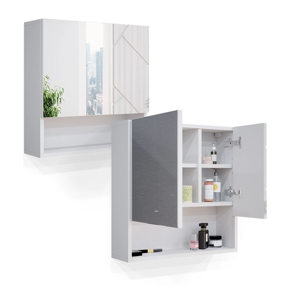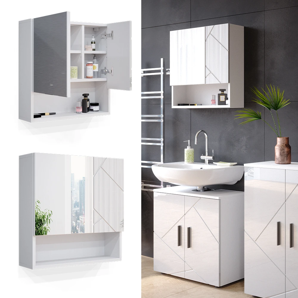 - MATERIAL: Der Badezimmer-Spiegelschrank besteht aus pflegeleichter Spanplatte 16 mm, mit einer Melaminharzbeschichtung. Einige Bestandteile des Artikels sind aus Glas gefertigt.