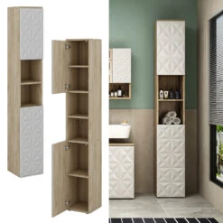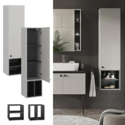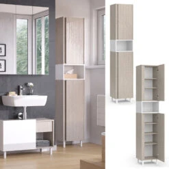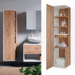 Badschrank „Beatrice“ Eiche/Anthrazit 38 X 190 Cm Mit Türen, Schublade Und Offenen Fächern Vicco
