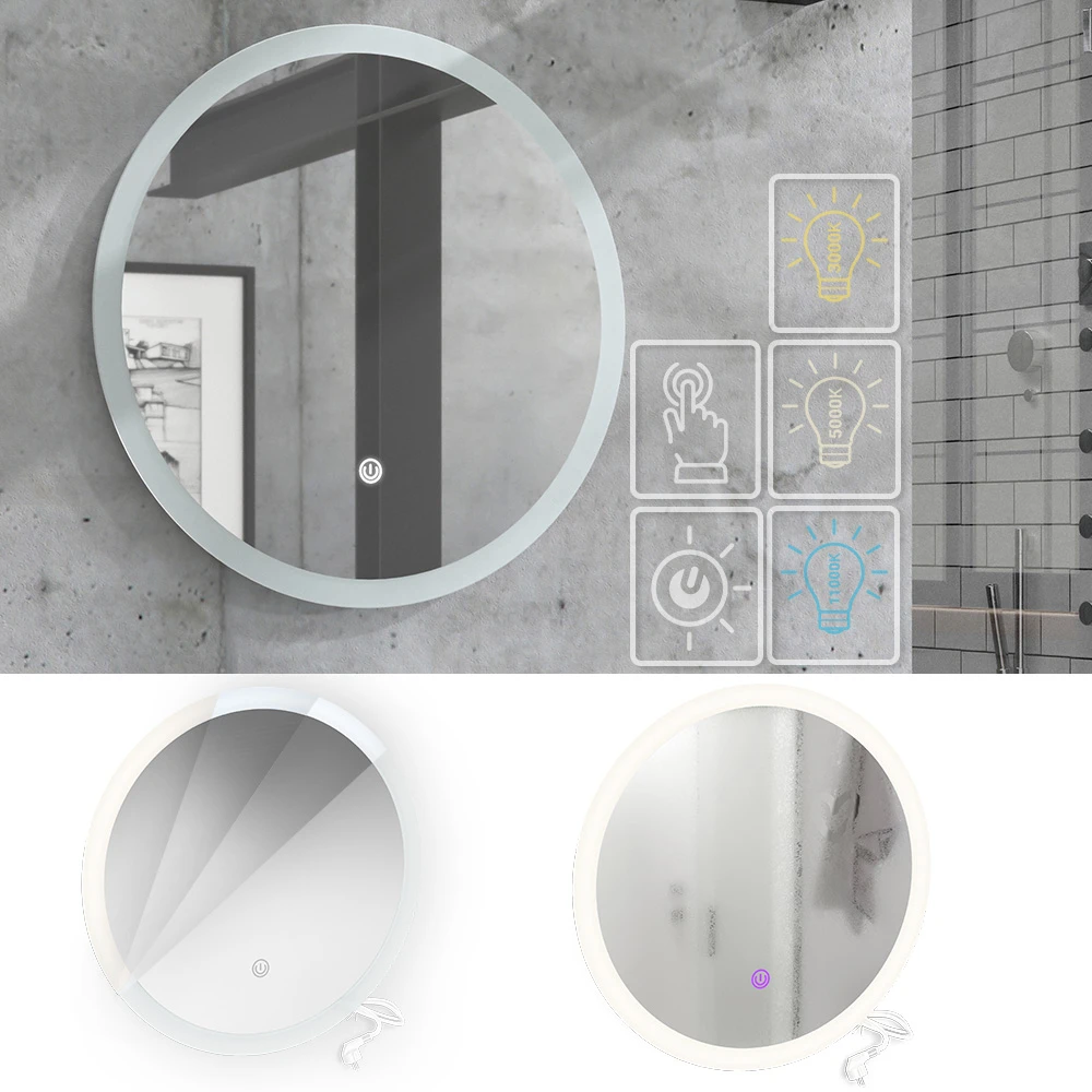 Der runde Badezimmerspiegel verleiht jedem Bad das gewisse Etwas und ist ein echter Hingucker. Der moderne Stil des Badspiegels lässt Ihren Raum besonders stilvoll und elegant wirken. Der LED-beleuchtete Rahmen gibt Ihnen das perfekte Licht, um sich morgens auf den Tag vorzubereiten oder sich abends zu entspannen. Sein berührungsempfindlicher Schalter ermöglicht eine einfache Bedienung und die einstellbare Helligkeit des Spiegels macht ihn sehr vielseitig. Dieses Badmöbelstück ist ein Muss für jeden, der sein Bad visuell bereichern möchte. Stellen Sie sich vor, wie Sie jeden Tag mit einem Lächeln auf den Lippen in Ihr wunderschönes Badezimmer gehen – mit diesem Badezimmerspiegel könnte dieser Traum endgültig Realität werden.