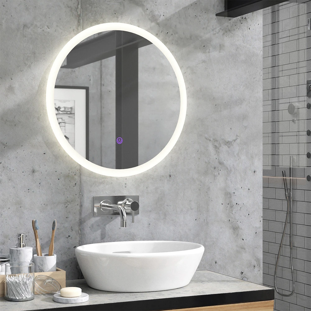- Dieser Badspiegel verfügt über einen LED-beleuchteten Rahmen und eine Touch-Switch-Schaltung, um die Helligkeit anzupassen. Ideal für eine perfekte Beleuchtung im Bad.