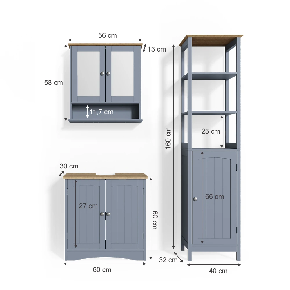 - MATERIAL: Das Set mit dem Spiegelschrank besteht aus pflegeleichtem MDF 12mm.