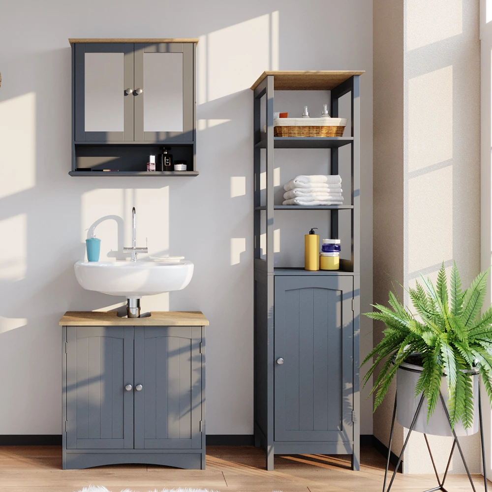- Das Badezimmerschrank-Set bietet reichlich Stauraum und ermöglicht es, verschiedene Sets der Serie zu kombinieren.