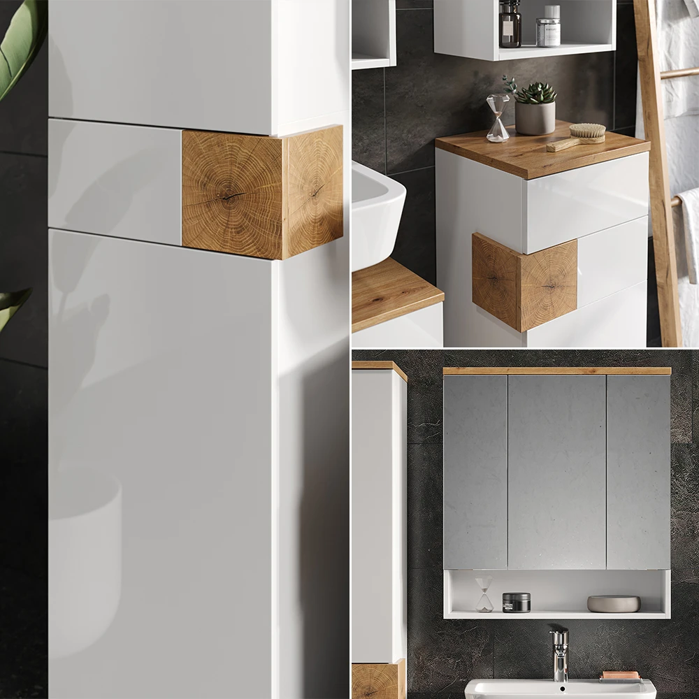 - MATERIAL: Das Set mit dem Spiegelschrank besteht aus pflegeleichter Spanplatte 16 mm, mit einer Melaminharzbeschichtung.