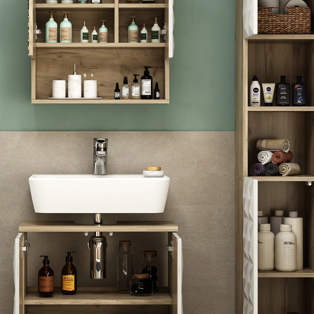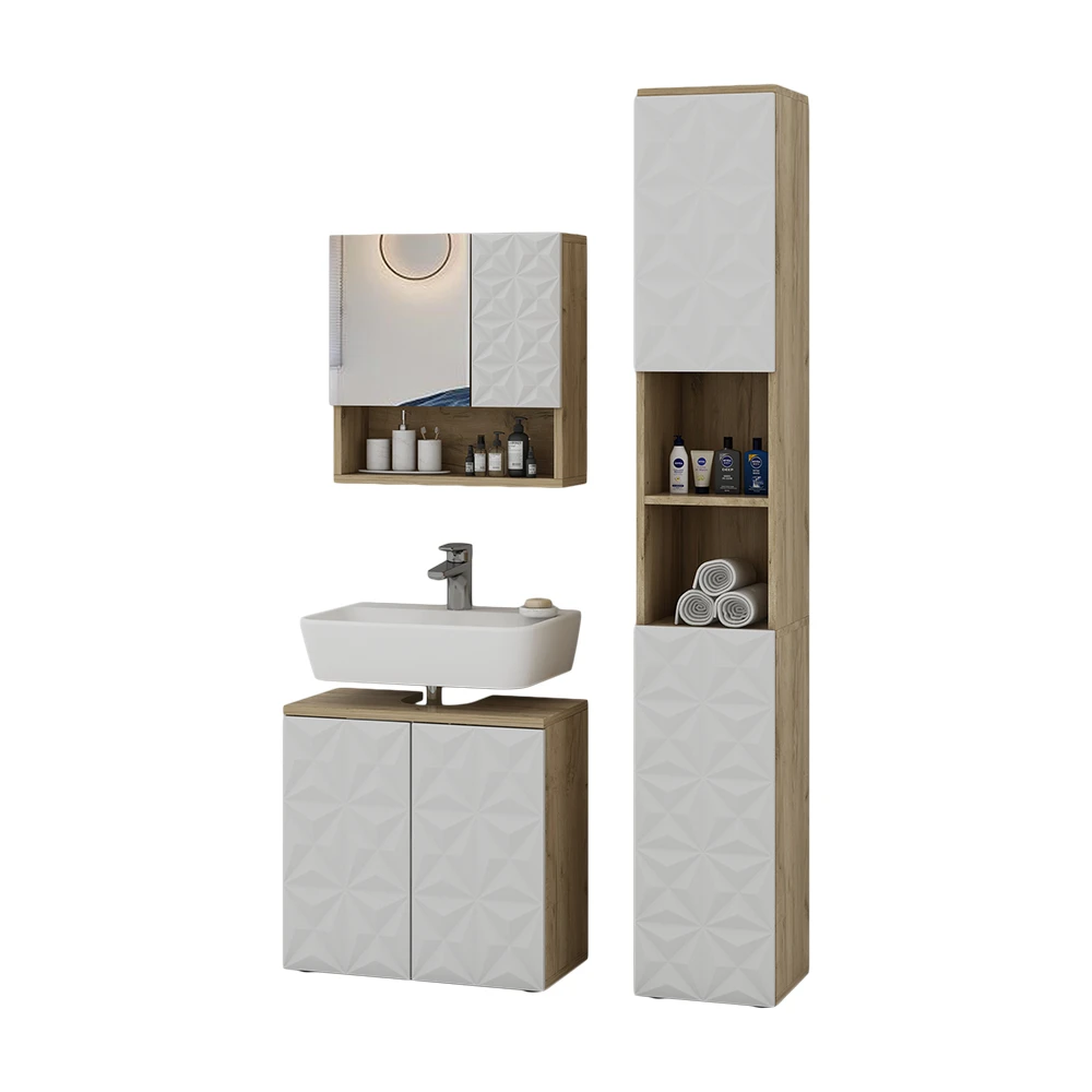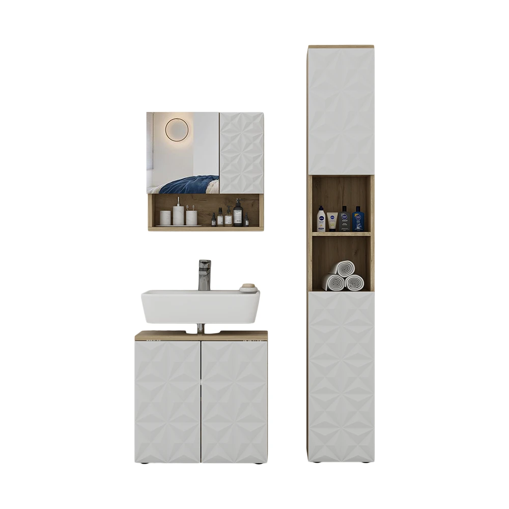 - LIEFERUMFANG: Badezimmerspiegel, Badschrank, Waschbeckenunterschrank, Montageanleitung, Montagematerial