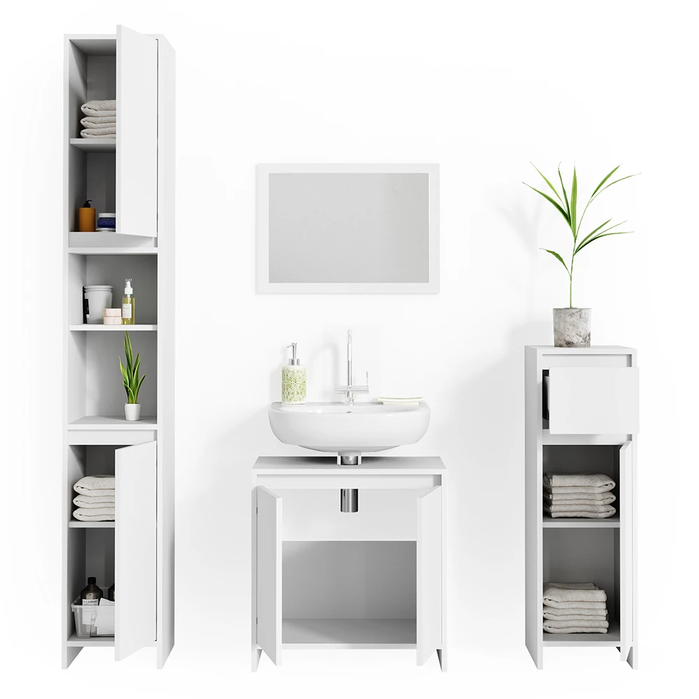 - LIEFERUMFANG: Badezimmerspiegel, Waschbeckenunterschrank, Badschrank, Midischrank, Montageanleitung, Montagematerial