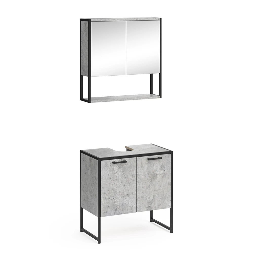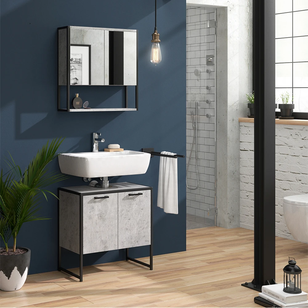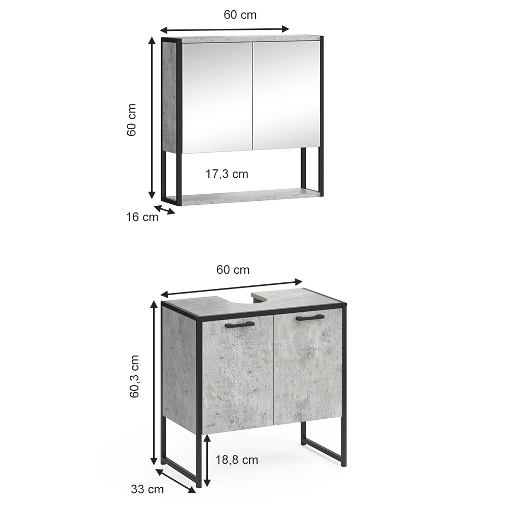 Das Fyrk Badmöbel Set ist die perfekte Wahl für alle, die sich einen modernen und zugleich funktionalen Stil für ihr Badezimmer wünschen. Das Set besteht aus einem Waschbeckenunterschrank und einem Spiegelschrank, die zusammen ein harmonisches Design bilden. Der loft-Stil des Sets verleiht Ihrem Badezimmer eine besondere Atmosphäre und lässt sich ideal mit anderen Sets der Fyrk-Kollektion kombinieren. Die Metallrahmen verleihen dem Set eine hohe Stabilität und verleihen ihm einen besonderen Charme. Mit reichlich Stauraum in den Schränken und dem Spiegelschrank haben Sie ausreichend Platz, um all Ihre Badutensilien ordentlich zu verstauen. Die Fyrk Kollektion bietet außerdem zusätzliche Artikel, um das Set zu erweitern und es so individuell an Ihre Bedürfnisse anpassen zu können. Erleben Sie ein einzigartiges Bad-Design mit dem Fyrk Badmöbel Set und machen Sie Ihr Badezimmer zu einem Ort der Ruhe und Erholung.