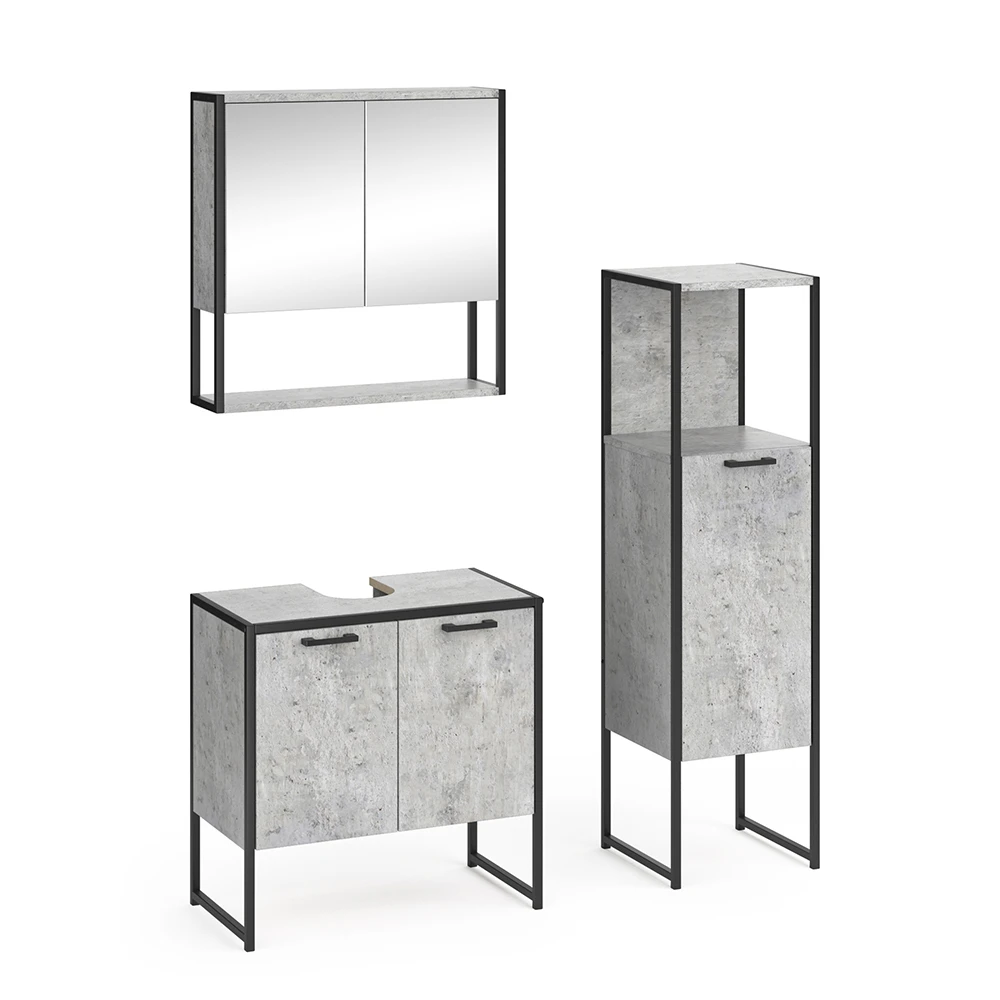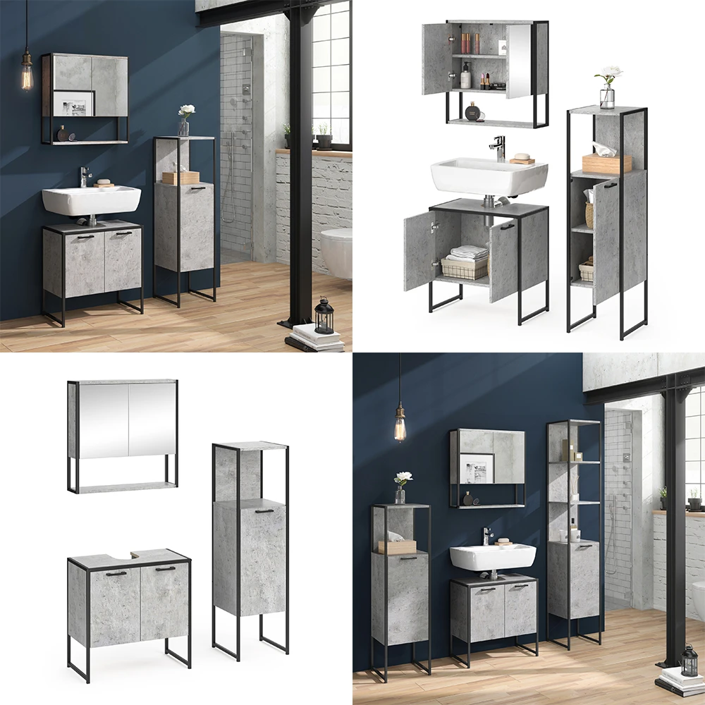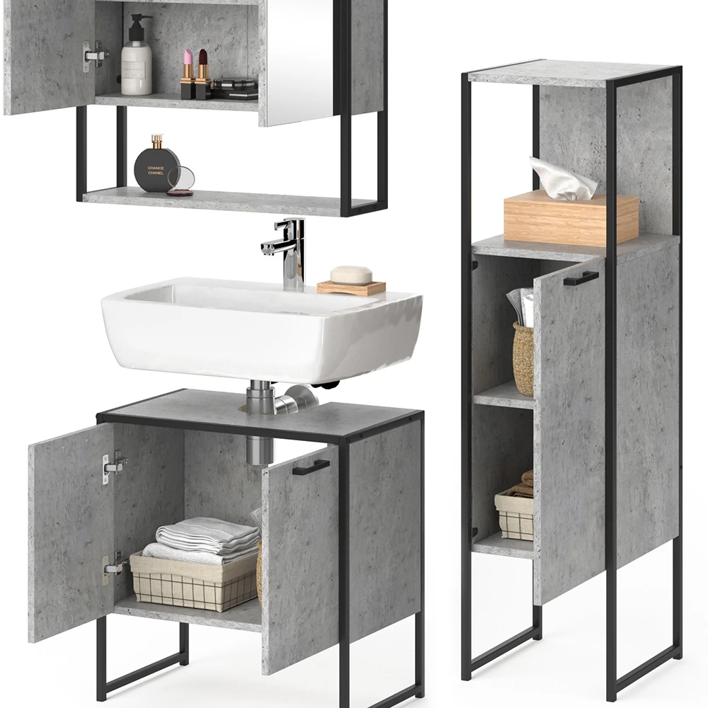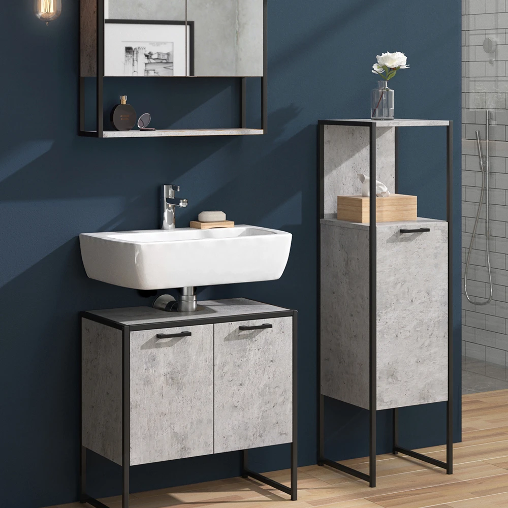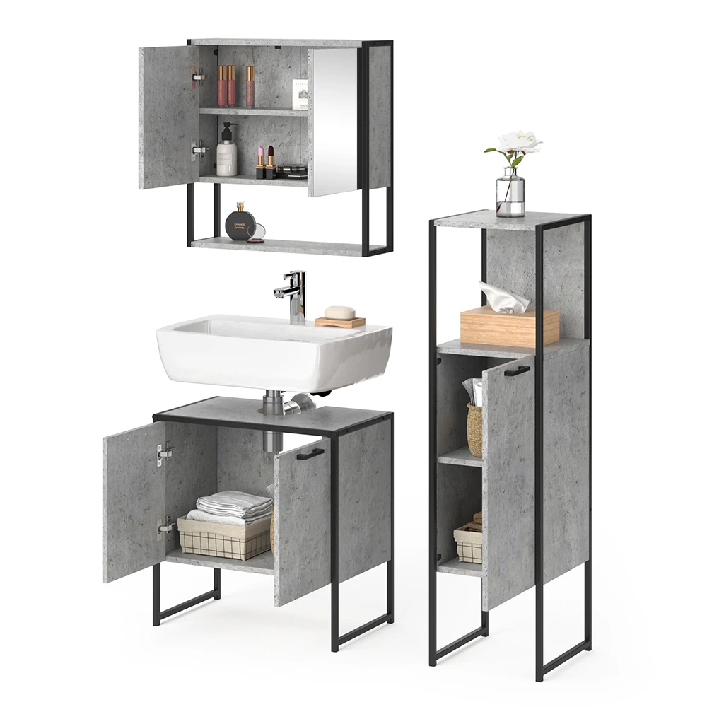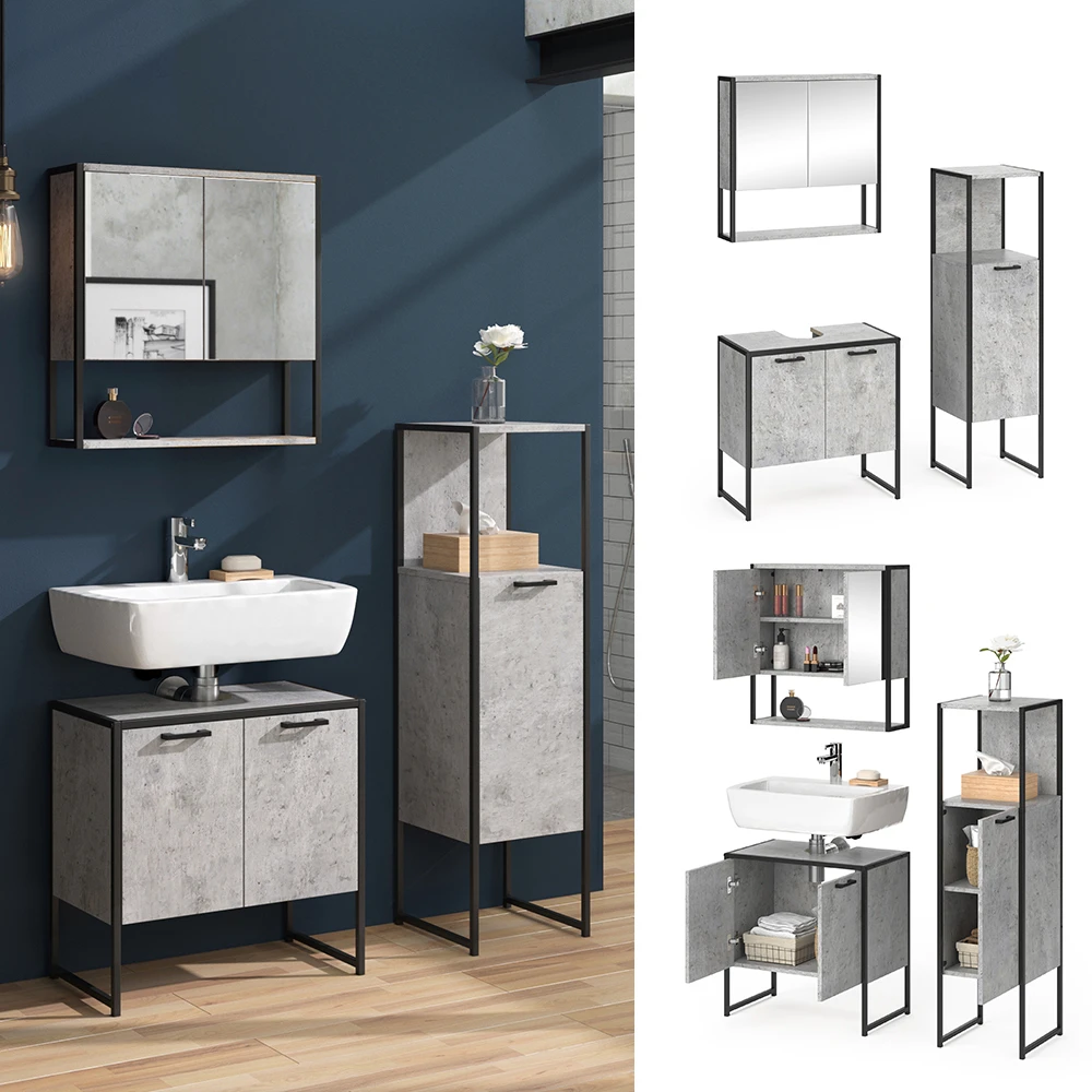 - Das Badezimmerschrank-Set bietet durch seinen Metallrahmen und viel Stauraum eine flexible Gestaltungsmöglichkeit für das Bad.