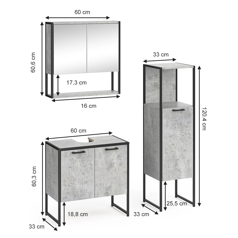Das Badmöbel Set Fyrk ist ein Muss für alle, die den trendigen Loft-Stil lieben. Dieses Set besteht aus einem Waschbeckenunterschrank, einem Midischrank und einem Spiegelschrank, die beide einen modernen Metallrahmen haben und viel Stauraum bieten. Das Beste daran ist, dass Sie verschiedene Sets der Serie kombinieren können, um das perfekte Badezimmer zu schaffen. Das Fyrk-Set kann auch mit zusätzlichen Artikel aus der Kollektion erweitert werden, um noch mehr Stauraum und stilvolle Akzente zu schaffen. Wenn Sie Ihre Gäste beeindrucken wollen oder einfach nur ein bisschen Spaß in Ihrem Badezimmer haben möchten, dann ist das Badmöbel Set Fyrk die perfekte Wahl für Sie. Gönnen Sie sich diesen Luxus und fühlen Sie sich wie ein VIP in Ihrem eigenen Zuhause.