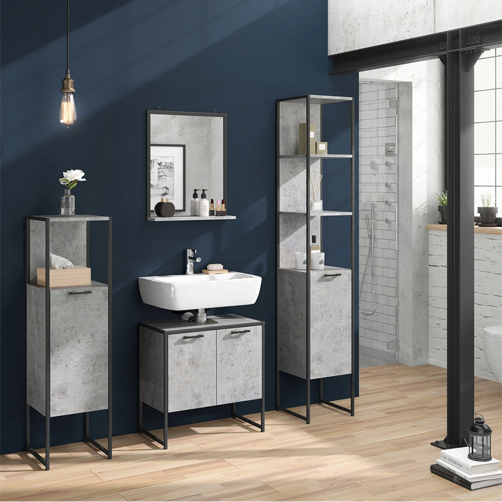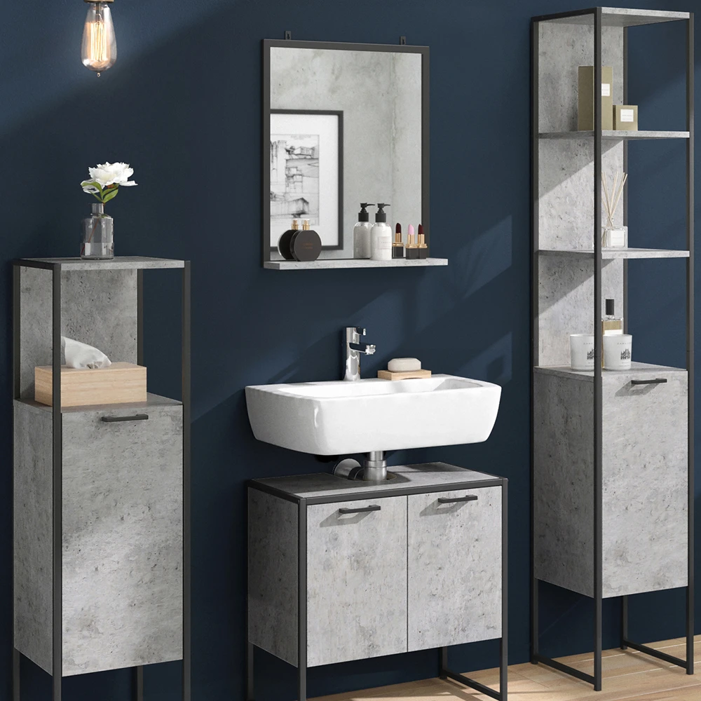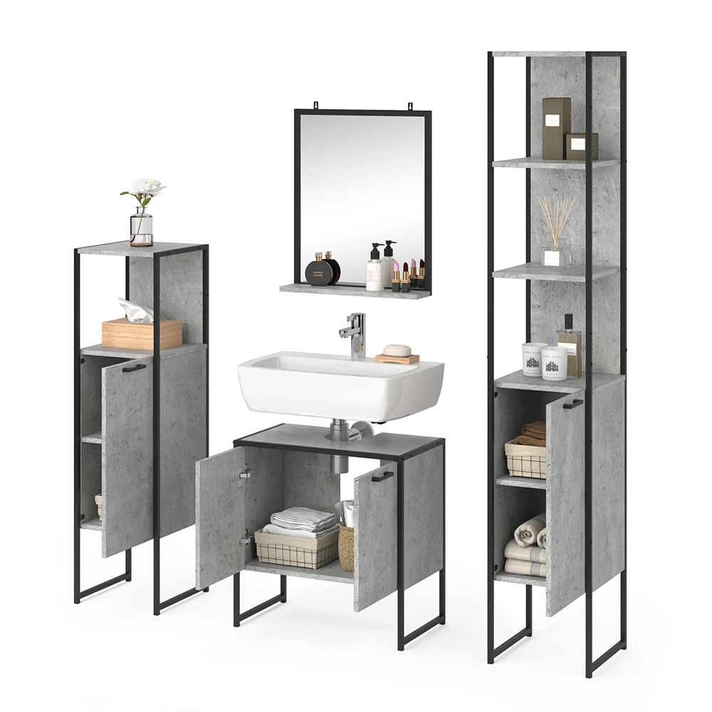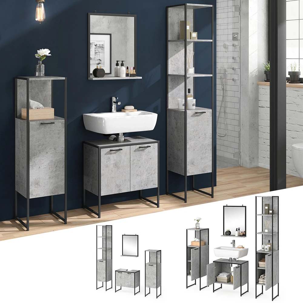 - Das Badezimmerschrank-Set bietet durch seinen Metallrahmen und viel Stauraum eine flexible Gestaltungsmöglichkeit für das Bad.