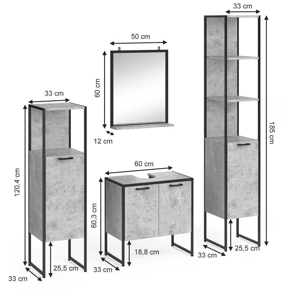 Möchten Sie Ihrem Badezimmer eine neue Atmosphäre verleihen? Dann ist das Badmöbel Set Fyrk genau das Richtige für Sie! Die loft-inspirierte Serie besteht aus vier Teilen: einem Waschbeckenunterschrank, einem Badezimmerspiegel und zwei weiteren Schränken. Alle Objekte sind durch einen eleganten Metallrahmen miteinander verbunden und bieten reichlich Stauraum für all Ihre Badutensilien. Das Beste daran ist, dass Sie verschiedene Sets der Fyrk-Serie miteinander kombinieren können, um das perfekte Ensemble für Ihr Badezimmer zu schaffen. Und das ist noch nicht alles: Sie können das Set jederzeit mit zusätzlichen Objekten aus der Fyrk-Kollektion erweitern und somit Ihr Badezimmer immer wieder neu gestalten. Kaufen Sie jetzt das Fyrk-Set und machen Sie Ihr Badezimmer zu einem Ort, an dem Sie sich wohlfühlen!