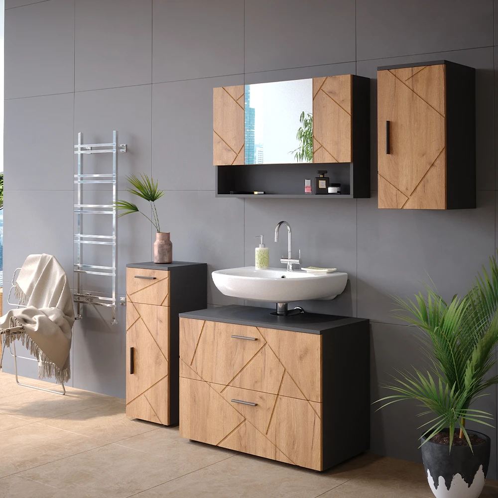 - Das Badezimmerschrank-Set bietet vielfältige Kombinationsmöglichkeiten, ideal für eine stilvolle und funktionale Einrichtung.