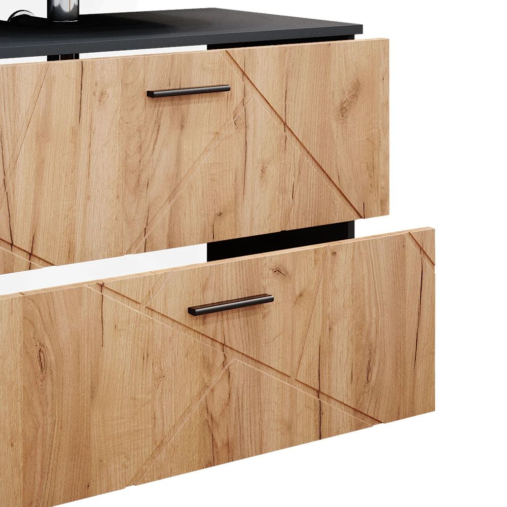 - MATERIAL: Das Set mit dem Spiegelschrank besteht aus pflegeleichter Spanplatte 16 mm, mit einer Melaminharzbeschichtung. Einige Bestandteile des Artikels sind aus MDF gefertigt.