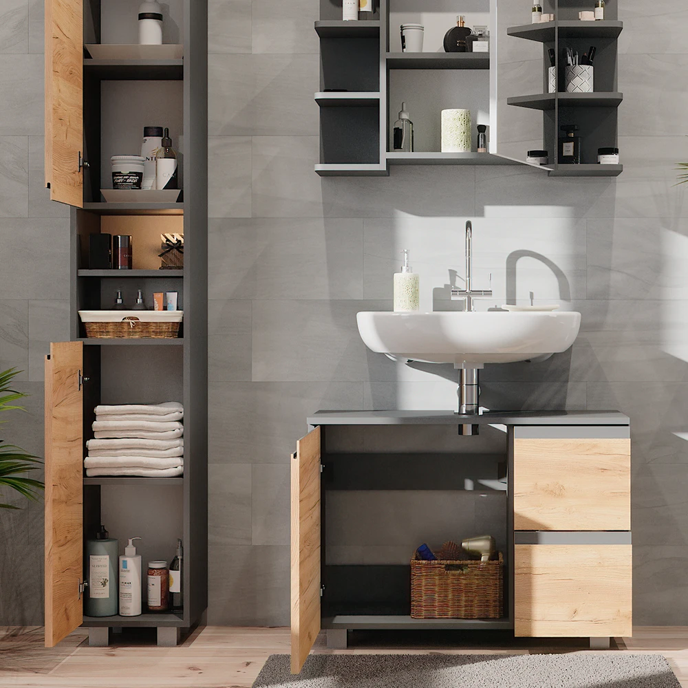 - Mit dem Badezimmerschrank-Set können Sie Ihre Bedürfnisse an Stauraum im Bad erfüllen und das Design individuell gestalten.