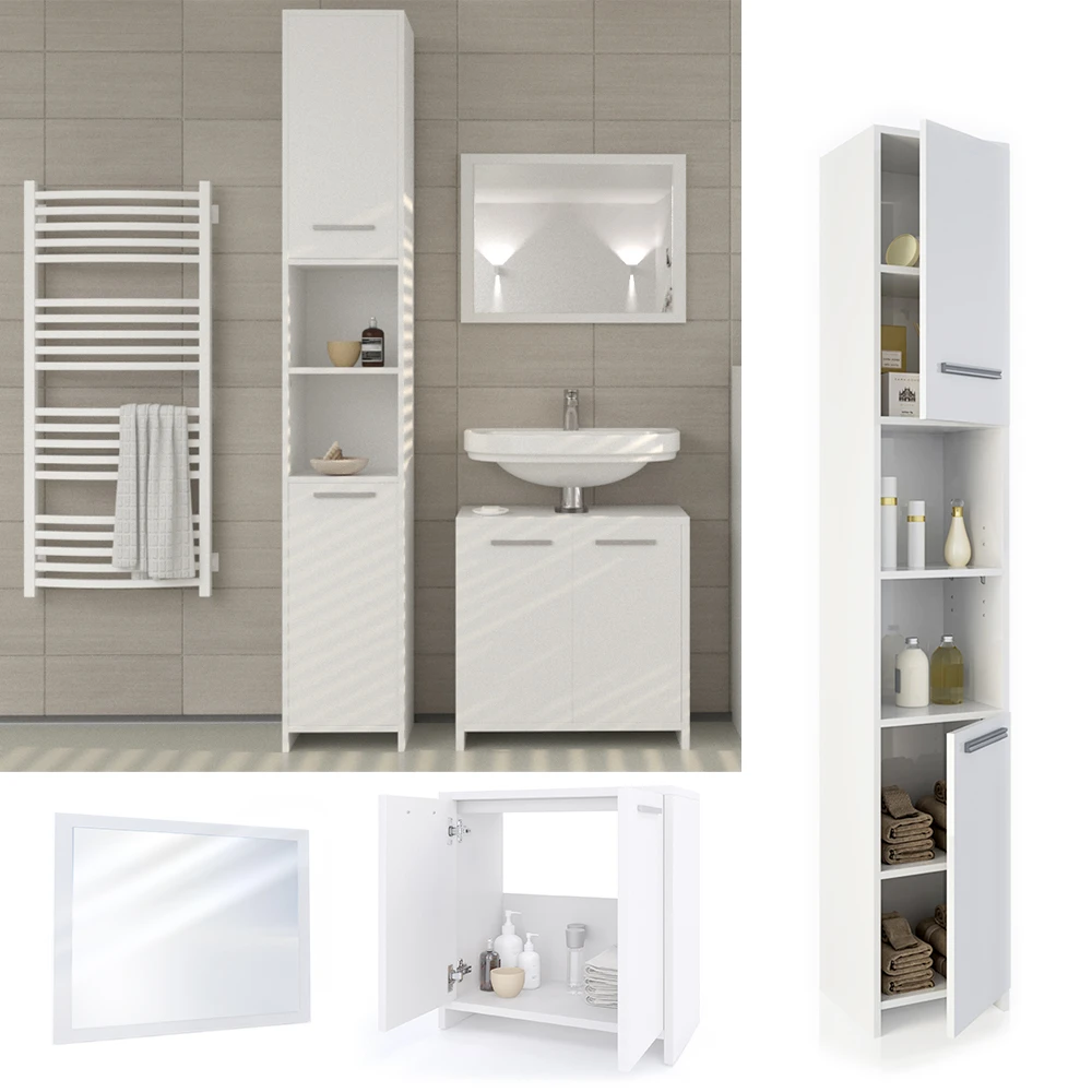 - LIEFERUMFANG: Badezimmerspiegel, Badschrank, Waschbeckenunterschrank, Montageanleitung, Montagematerial