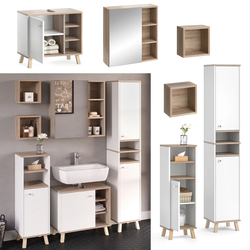 - MATERIAL: Das Set mit dem Spiegelschrank besteht aus pflegeleichter Spanplatte 16 mm, mit einer Melaminharzbeschichtung.
