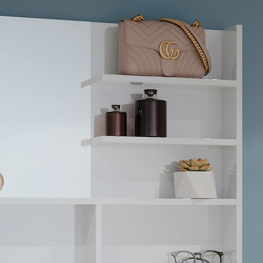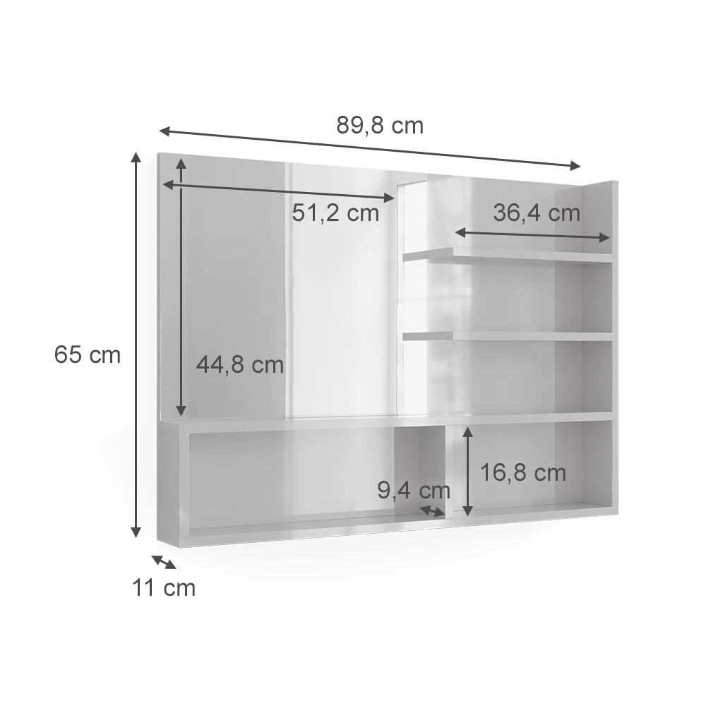 Mit unserem Spiegelregal profitieren Sie von einem großzügigen Spiegel und zahlreichen Ablagen für eine optimale Organisation im Bad. Das moderne Design unseres Produkts verleiht Ihrem Badezimmer einen zeitgemäßen, eleganten Look. Unser Wandspiegelregal zeichnet sich durch seine hochwertige Verarbeitung, die Langlebigkeit und Zuverlässigkeit gewährleistet, aus. Die leichte Wandmontage ermöglicht einen unkomplizierten Aufbau, sodass Sie schnell und mühelos von den Vorzügen unseres Regals profitieren können.