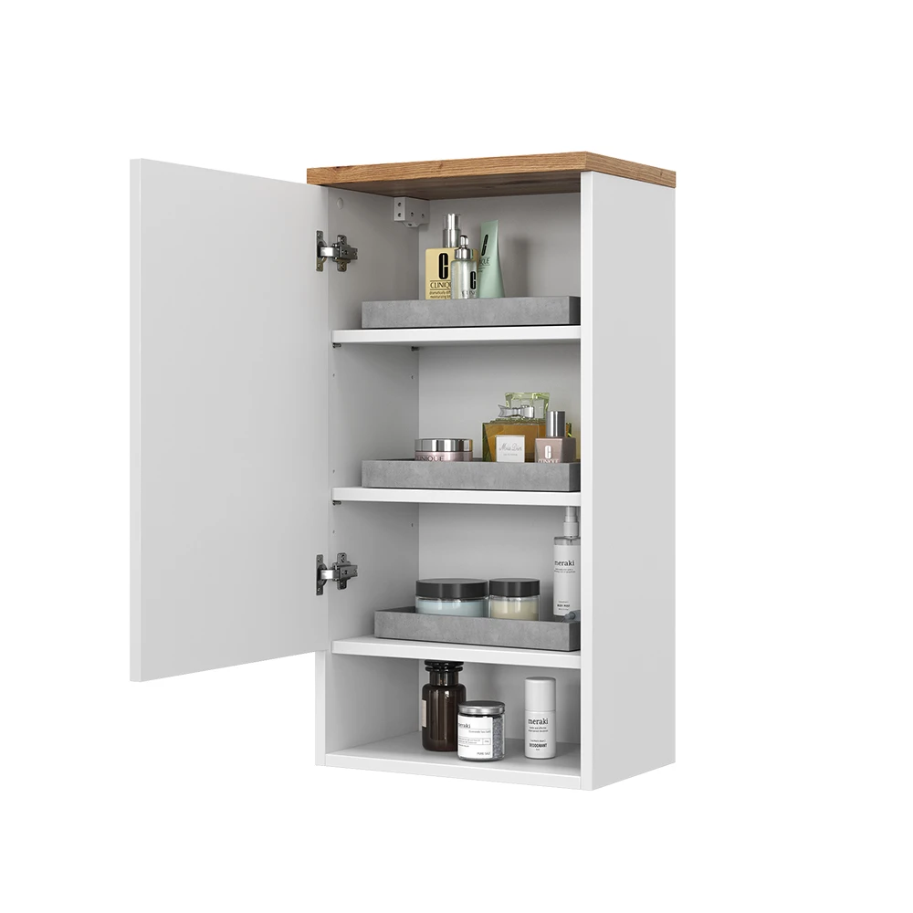 Der Hängeschrank schafft nochmal mehr Stauraum und Platz zur gründlichen Organisation aller Badutensilien.