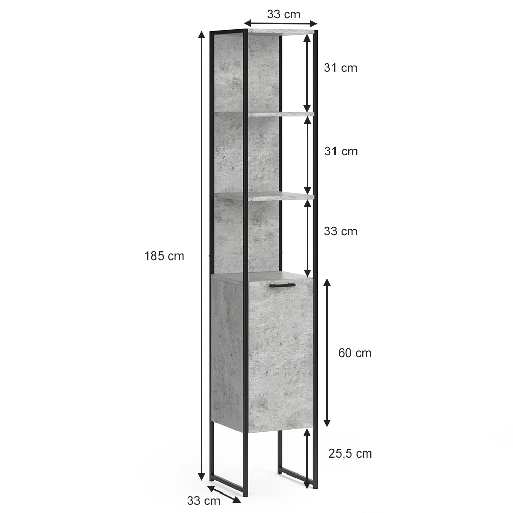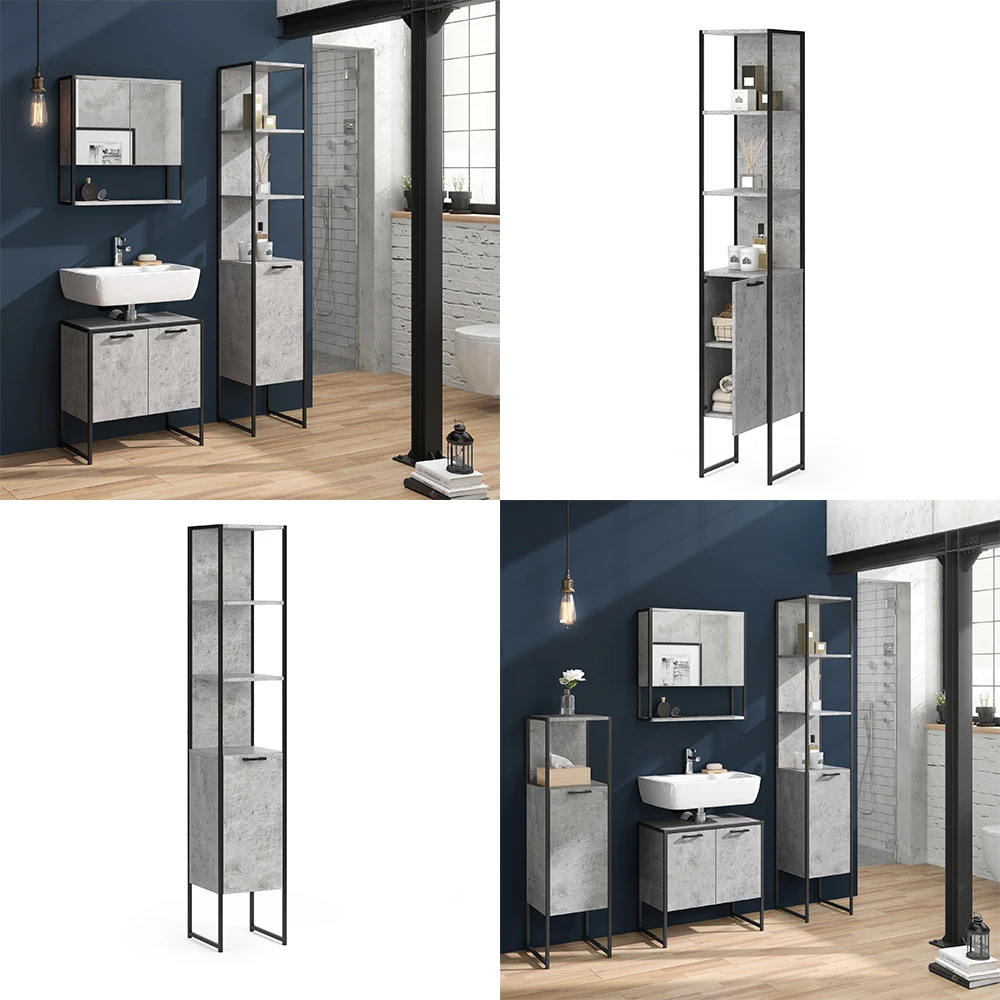 Badschrank „Fyrk“ Beton/Schwarz 33 X 185 Cm Vicco