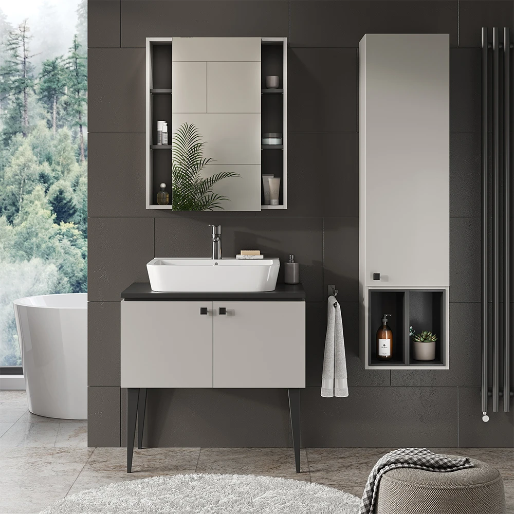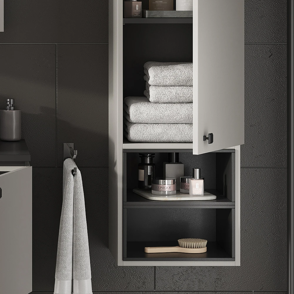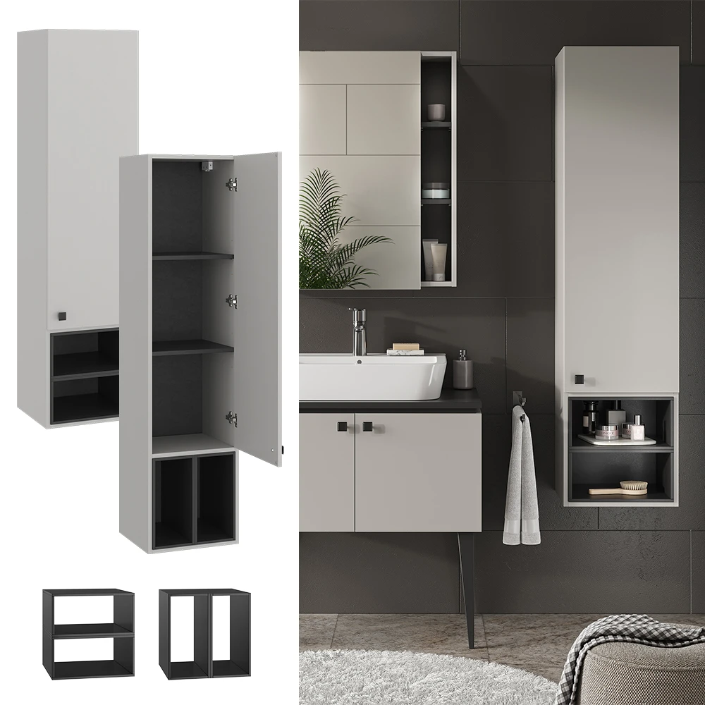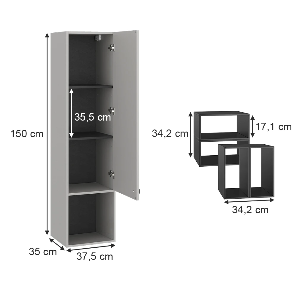 Badschrank „Gerta“ Grau/Schwarz 37.5 X 150 Cm Mit Tür Und Offenen Fächern Vicco