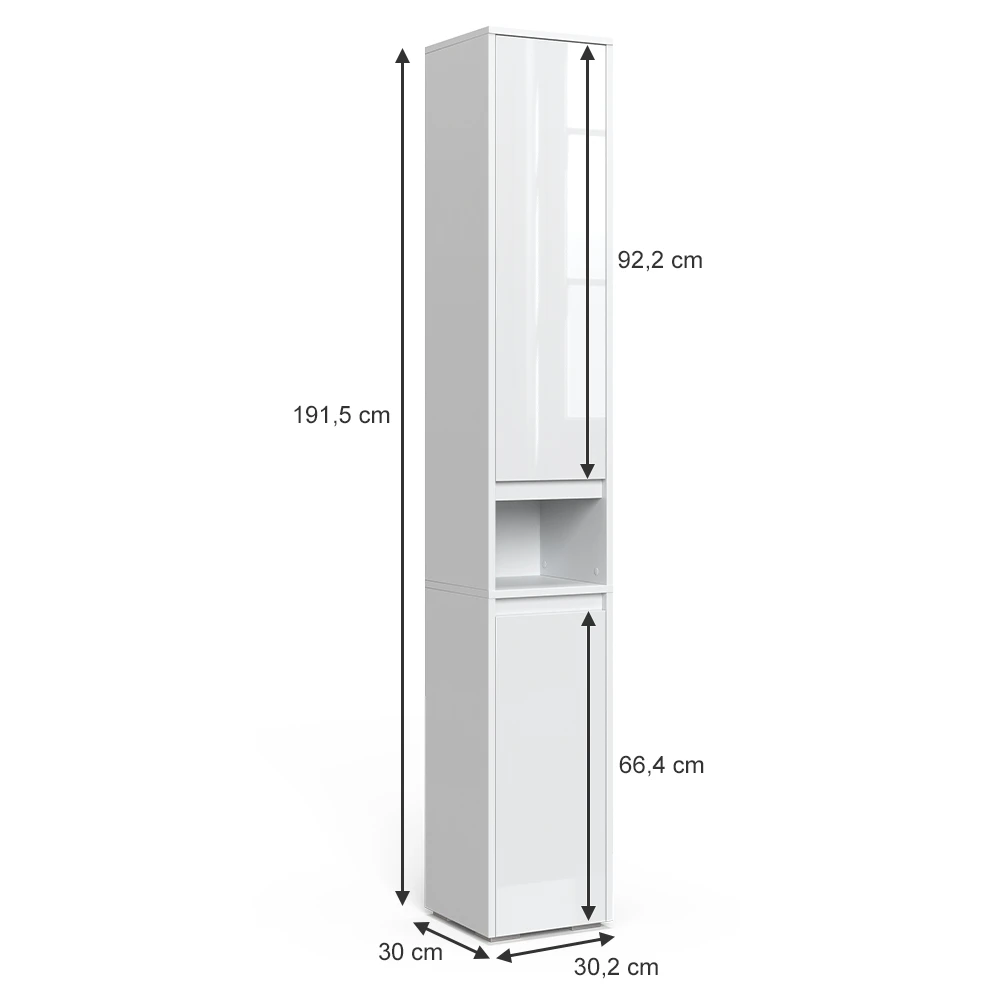 - MAßE: Der Wäscheschrank hat folgende Abmessungen: Breite: 30,2 cm, Höhe: 191,5 cm, Tiefe: 30 cm. Alle detaillierten Größen sind auf den Fotos angegeben.