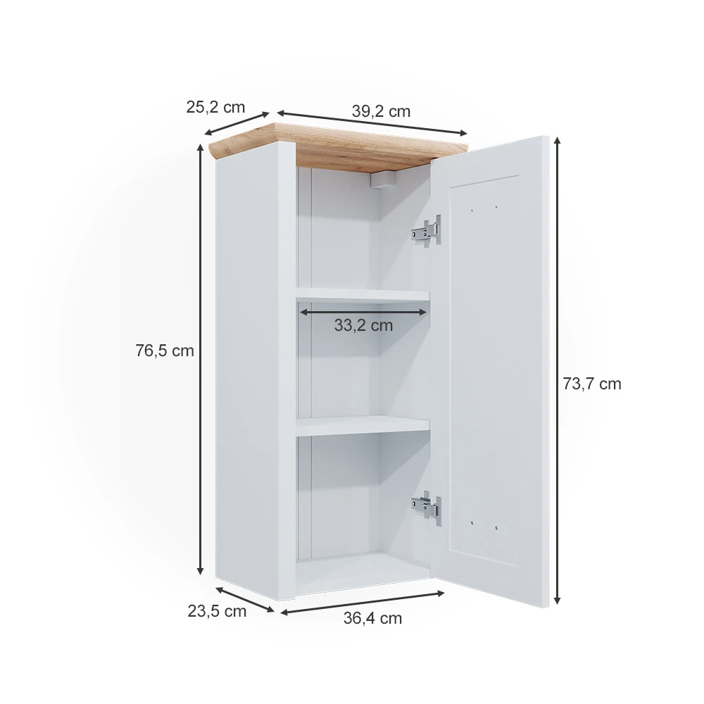 - MAßE: Der hängender Badezimmerschrank hat eine Breite von 39,2 cm, eine Höhe von 76,5 cm und eine Tiefe von 25,2 cm. Alle detaillierten Größen sind auf den Fotos angegeben.