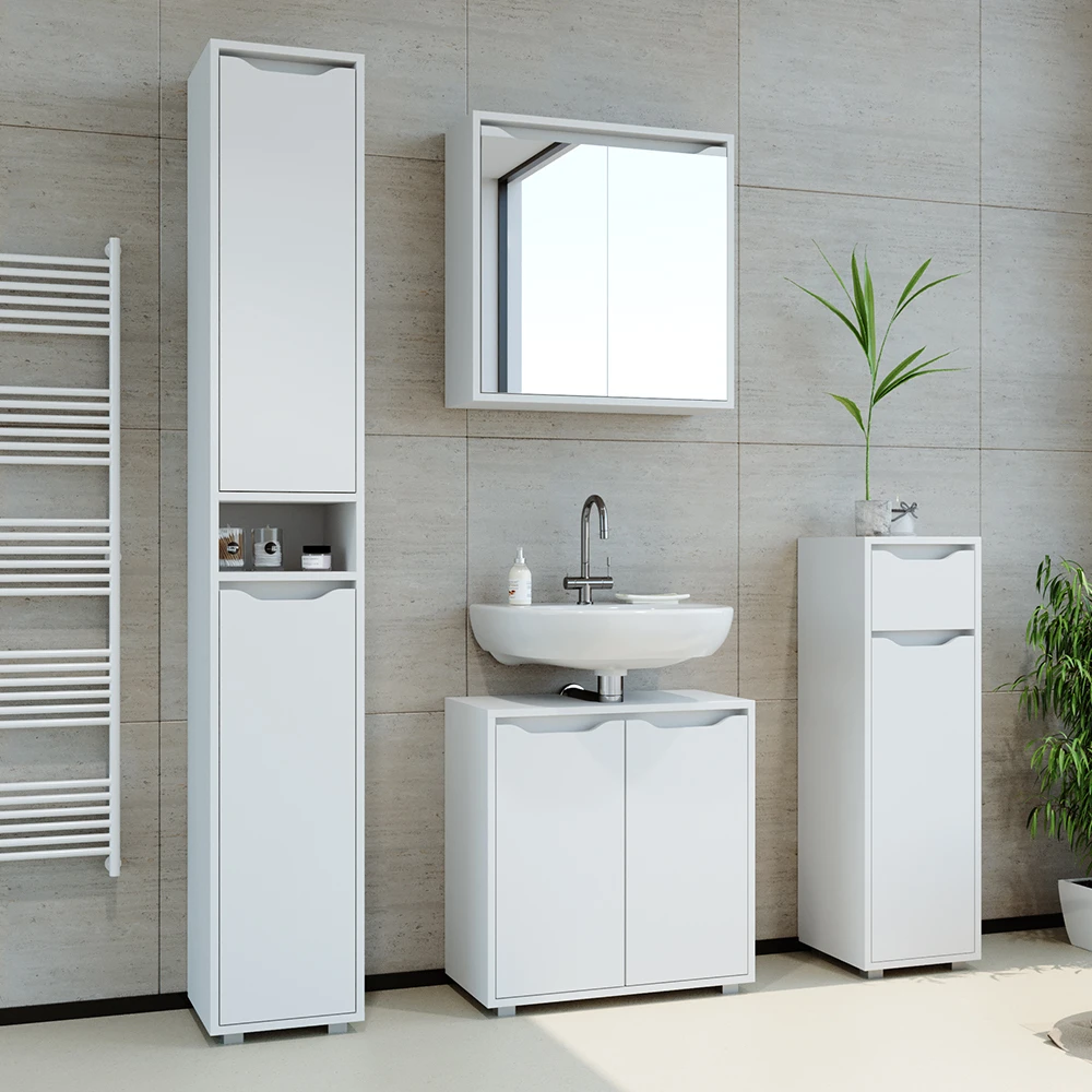 - Mit dem schmalen Badezimmerschrank „Ruben“ treffen Sie eine gute Entscheidung, dank seines optimierten Designs und seiner Universalität für jedes Haus.