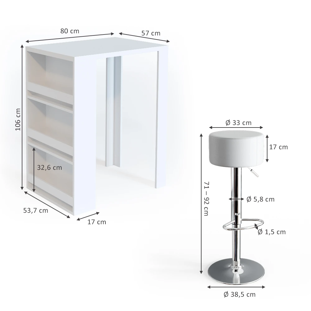 Bartisch Set Weiß 80 X 57 Cm Mit 2 Barhockern Vicco