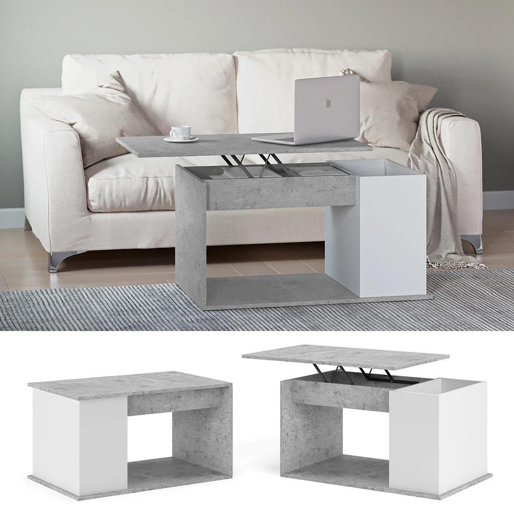 Couchtisch „Hugo“ Weiß/Beton 90 X 49 Cm Vicco