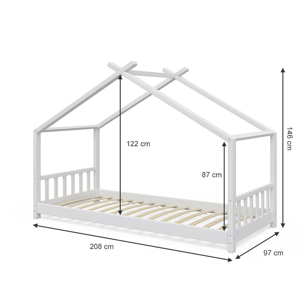 - MAßE: Das Kinderbett ist passend für eine Matratze von 90×200 cm und hat eine Höhe von 146 cm. Alle detaillierten Größen sind auf den Fotos angegeben.