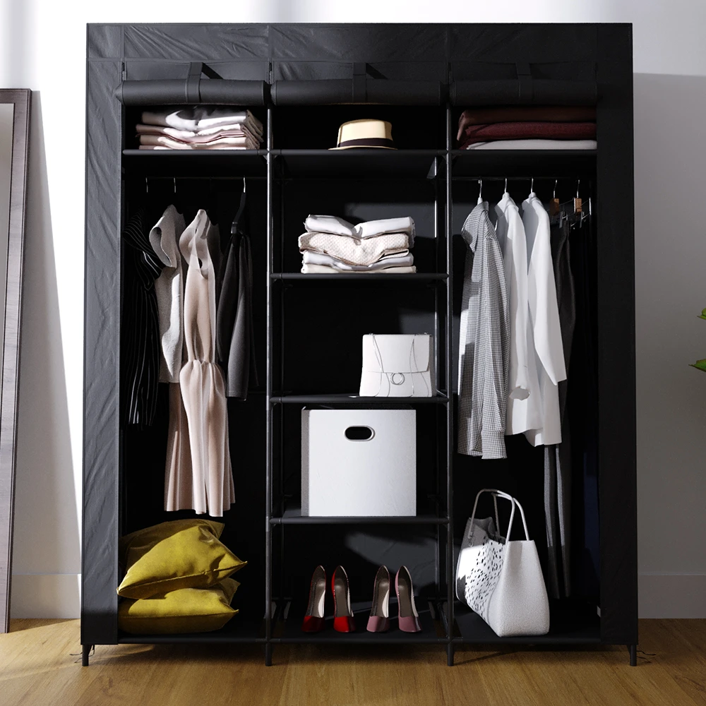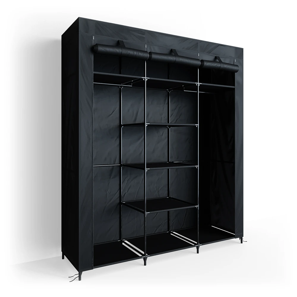 Egal ob Schlafzimmer, Kinderzimmer, Keller oder beim Camping – dieser stabile Stoffschrank lässt sich schnell und einfach aufbauen und bietet durch die 9 Ablagen und den zwei Kleiderstangen viel Stauraum.