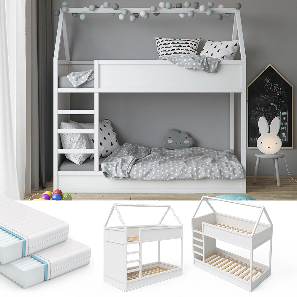 - LIEFERUMFANG: Etagenbett, 2x Kaltschaummatratze, Montageanleitung, Montagematerial