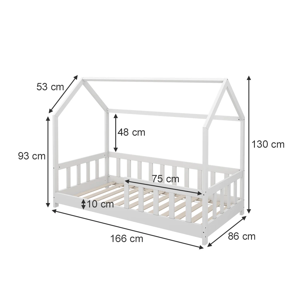 - Die zaunartige Umrandung funktioniert als Rausfallschutz und hilft sowohl Kissen und Decken im Bett zu behalten als auch im Schlaf nicht aus dem Spielbett zu fallen – ein stabiles Bett aus Holz.