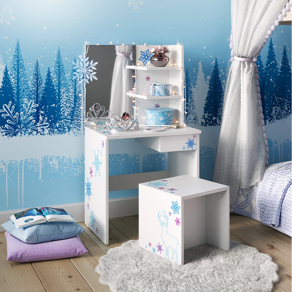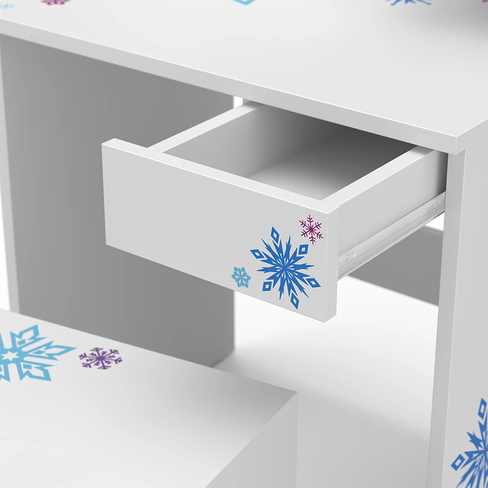 Der Kinder Schminktisch, Schneeflocke, ist ein Traum für alle kleinen Prinzessinnen da draußen! Mit seinem innovativen Design und dem zauberhaften Wintermotiv lässt er die Herzen höherschlagen. Die elegante rechteckige Spiegelfläche eignet sich perfekt zum Stylen und Schminken, während die beiden offenen Regale genügend Platz für all die Lieblingsaccessoires bieten. Dieser Kosmetiktisch ist nicht nur eine Frisierkommode, sondern ein Ort der Kreativität und Inspiration. Und das Beste? Dieses Schminktischmodell gibt es in verschiedenen Ausführungen – für jede Geschmacksrichtung ist etwas dabei! Verzaubern auch Sie Ihr kleines Mädchen mit diesem tollen Kinder Schminktisch!