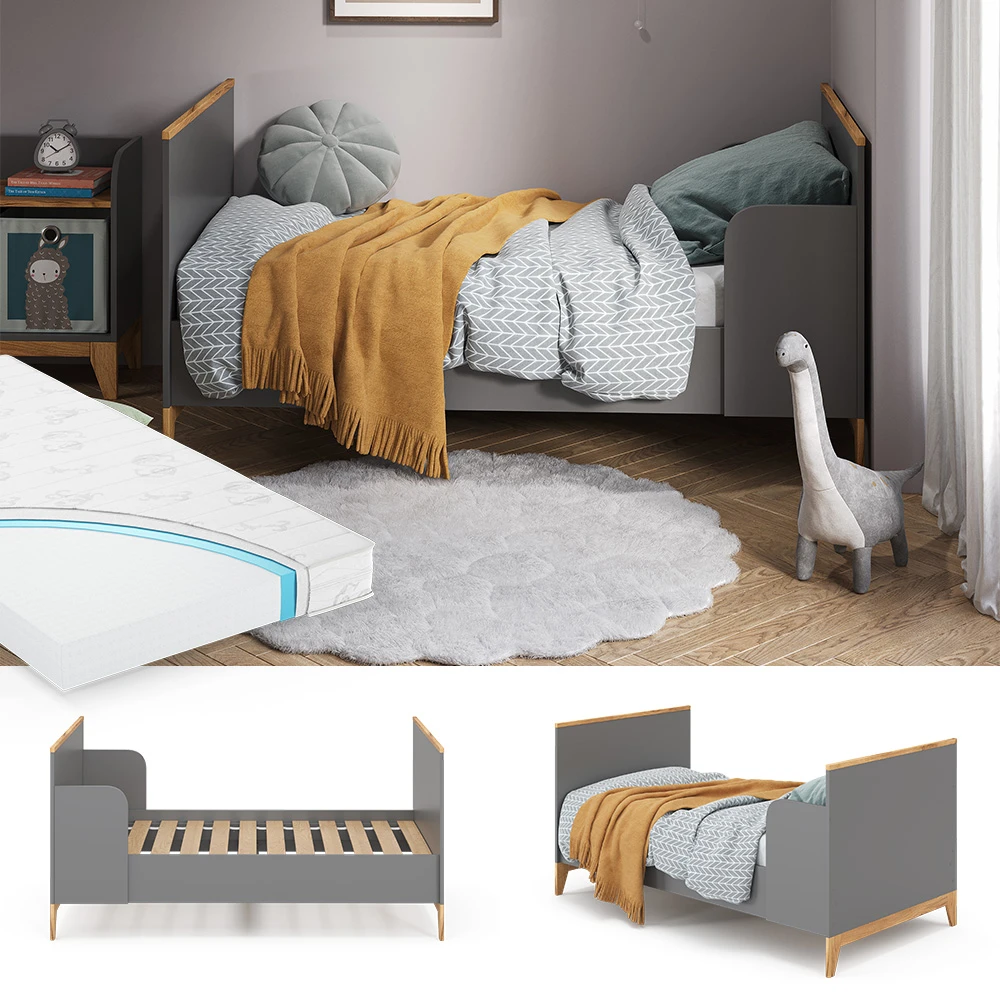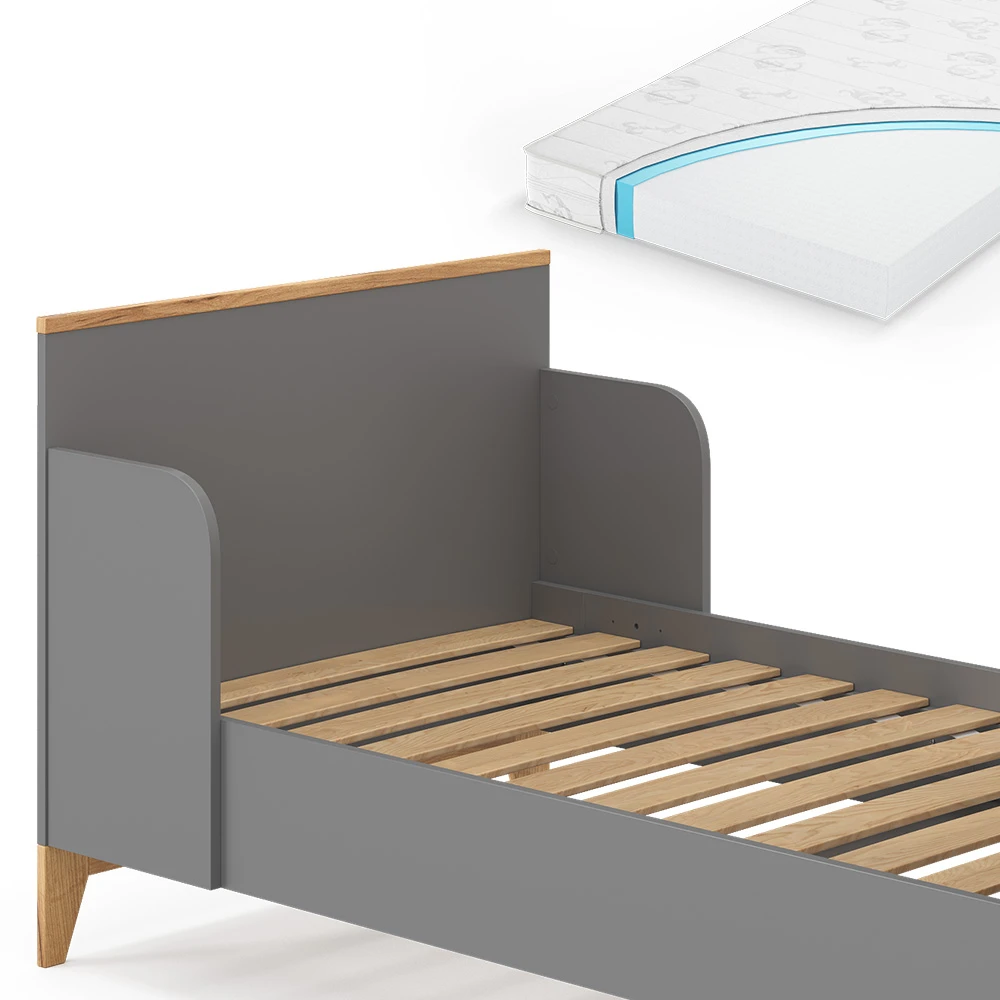 Das Kinderbett mit Matratze ist nicht nur ein einfaches Bett, sondern ein wahres Multitalent! Mit seinen zahlreichen Funktionen begleitet es Ihr Kind von den ersten Jahren bis hin zum Jugendalter. Das ausziehbare Bett kann als zusätzlicher Schlafplatz für Übernachtungsgäste oder als gemütliches Sofa dienen. Die Funktionalität und Flexibilität des Bettes machen es zum perfekten Begleiter für Familien, die gerne Besuch empfangen oder sich gerne mal umgestalten möchten. Doch nicht nur das: Durch das hochwertige Material und das zeitlose Design ist das Kinderbett ein echter Blickfang in jedem Kinderzimmer. Lassen Sie sich von dem einzigartigen Konzept dieses Bettes überzeugen und schaffen Sie eine gemütliche Atmosphäre für Ihr Kind!