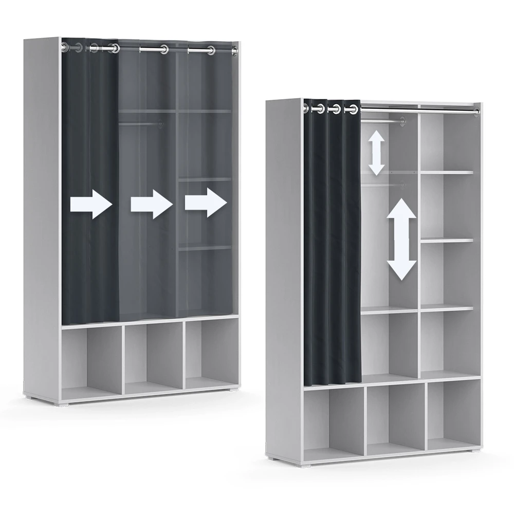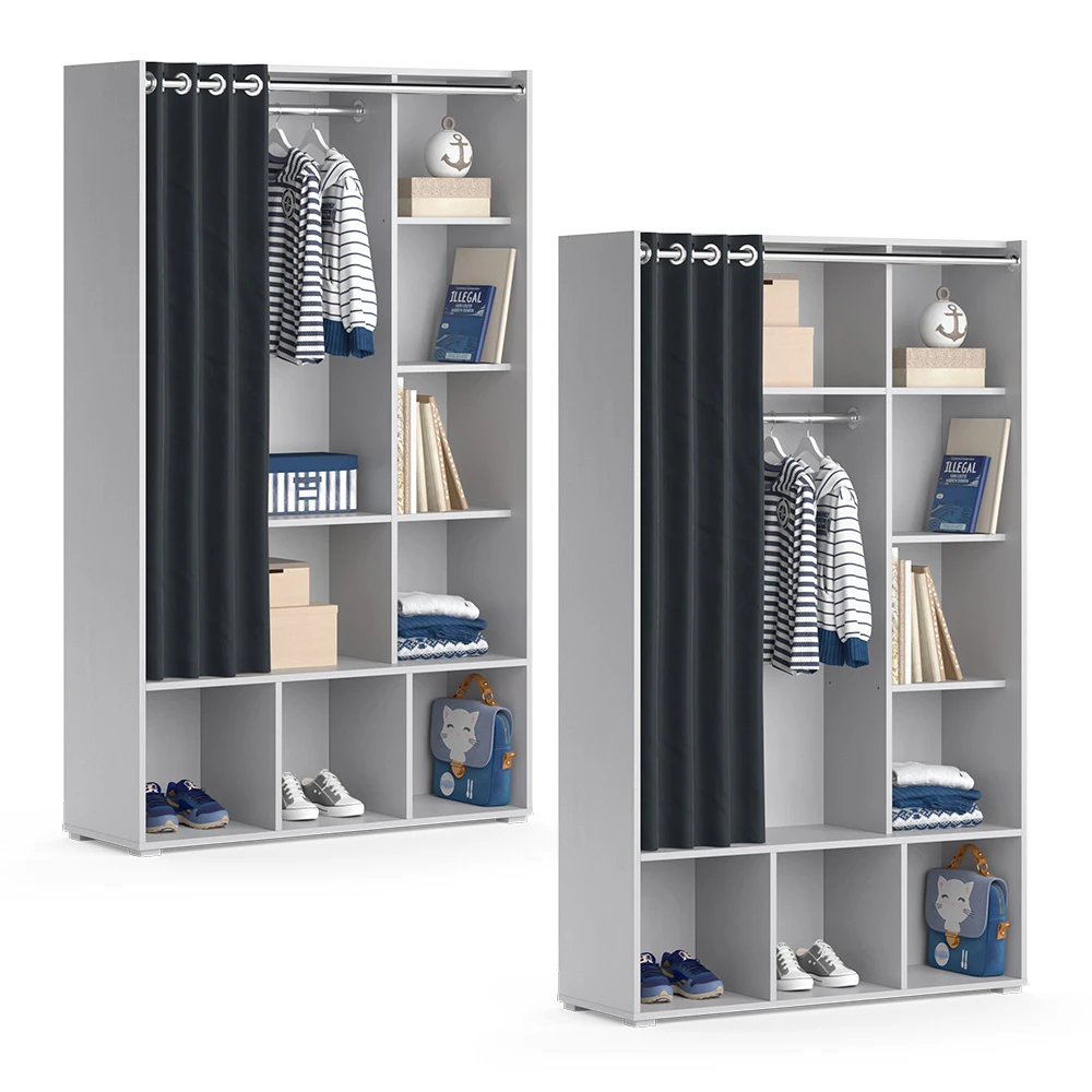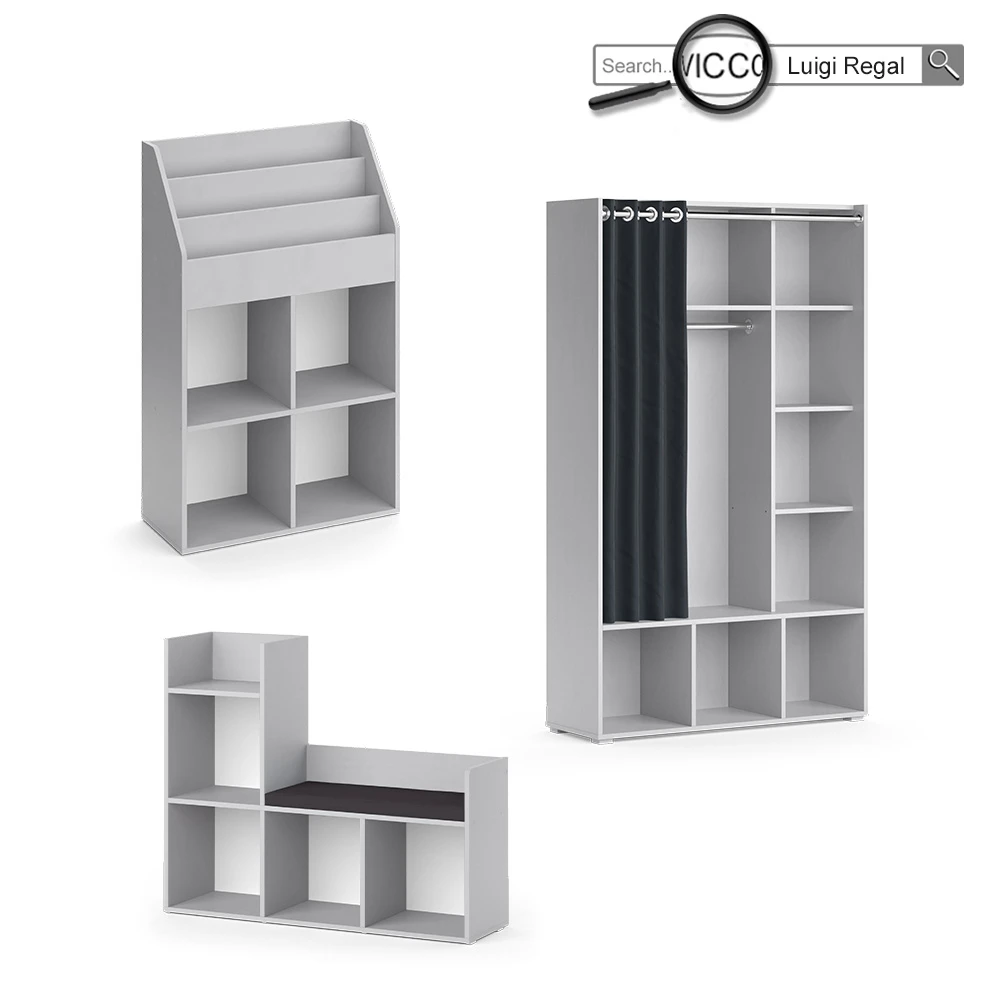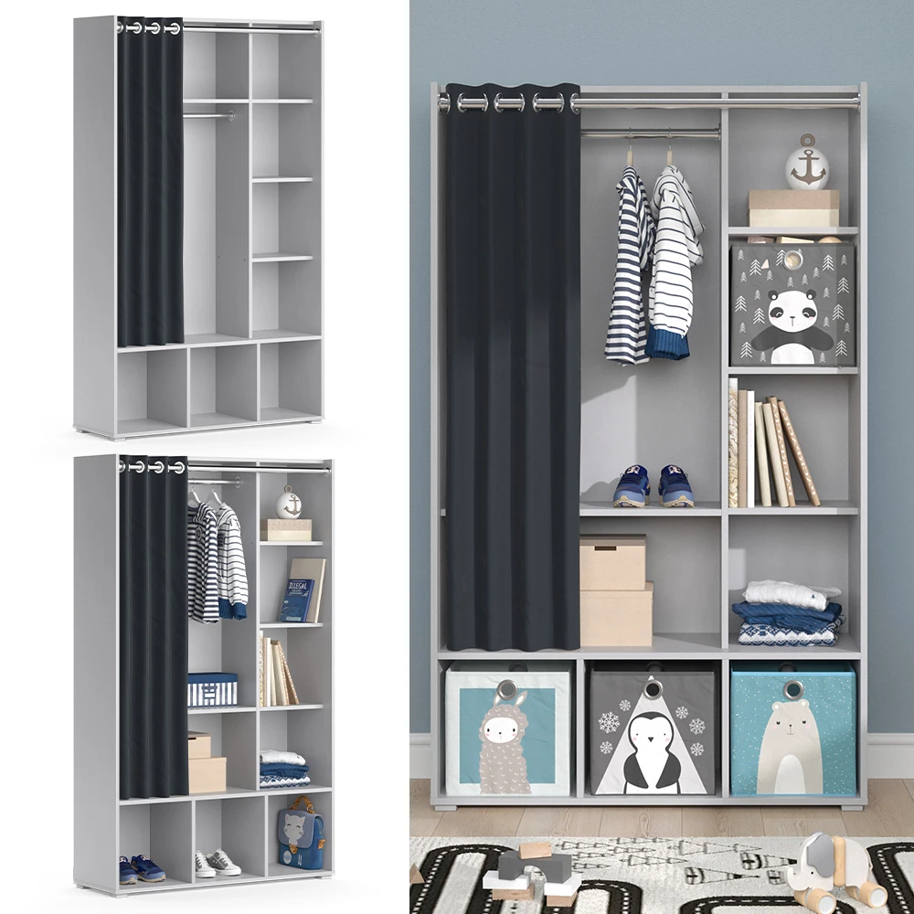 Der Kinderkleiderschrank Luigi mit 4 Faltboxen ist ein absolutes Must-have für jedes Kinderzimmer. Die Möbelserie Luigi wurde speziell für Kinderzimmer entworfen und bietet eine Kombination aus Funktionalität und Design. Der Schrank verfügt über insgesamt 7 offene Fachböden und einen Garderobenständer, der reichlich Stauraum für Kleidung und Accessoires bietet. Das Beste daran ist, dass der Schrank mit anderen Artikeln der Kollektion Luigi kombiniert werden kann. So lässt sich das komplette Kinderzimmer im gleichen Stil gestalten. Die hochwertigen Materialien garantieren eine lange Lebensdauer und machen den Kleiderschrank zum absoluten Lieblingsstück im Kinderzimmer. Sorgen Sie dafür, dass Ihr Kind sein eigenes Reich hat und sich rundum wohlfühlt – mit dem Kinderkleiderschrank Luigi und den anderen Produkten der Möbelserie Luigi.