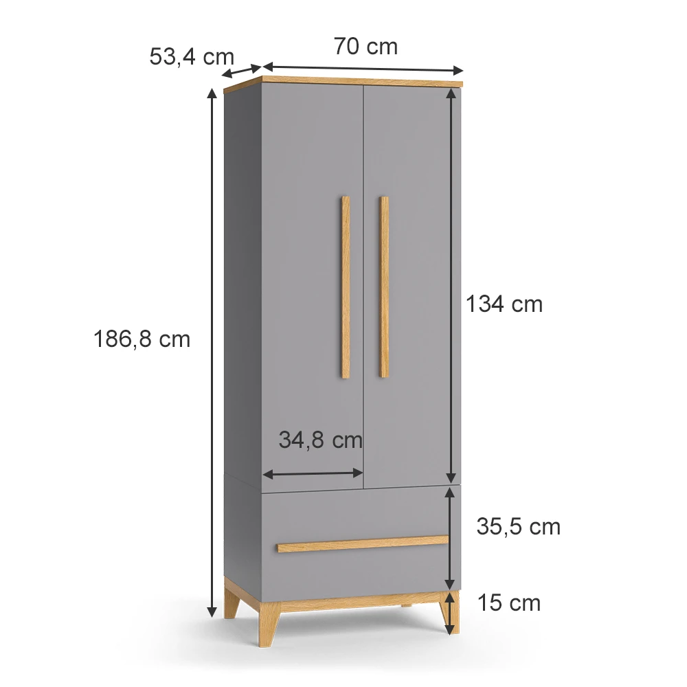 - MAßE: Der Kleiderschrank für Kinder hat eine Breite von 70 cm, eine Höhe von 187 cm und eine Tiefe von 53 cm. Alle detaillierten Größen sind auf den Fotos angegeben.