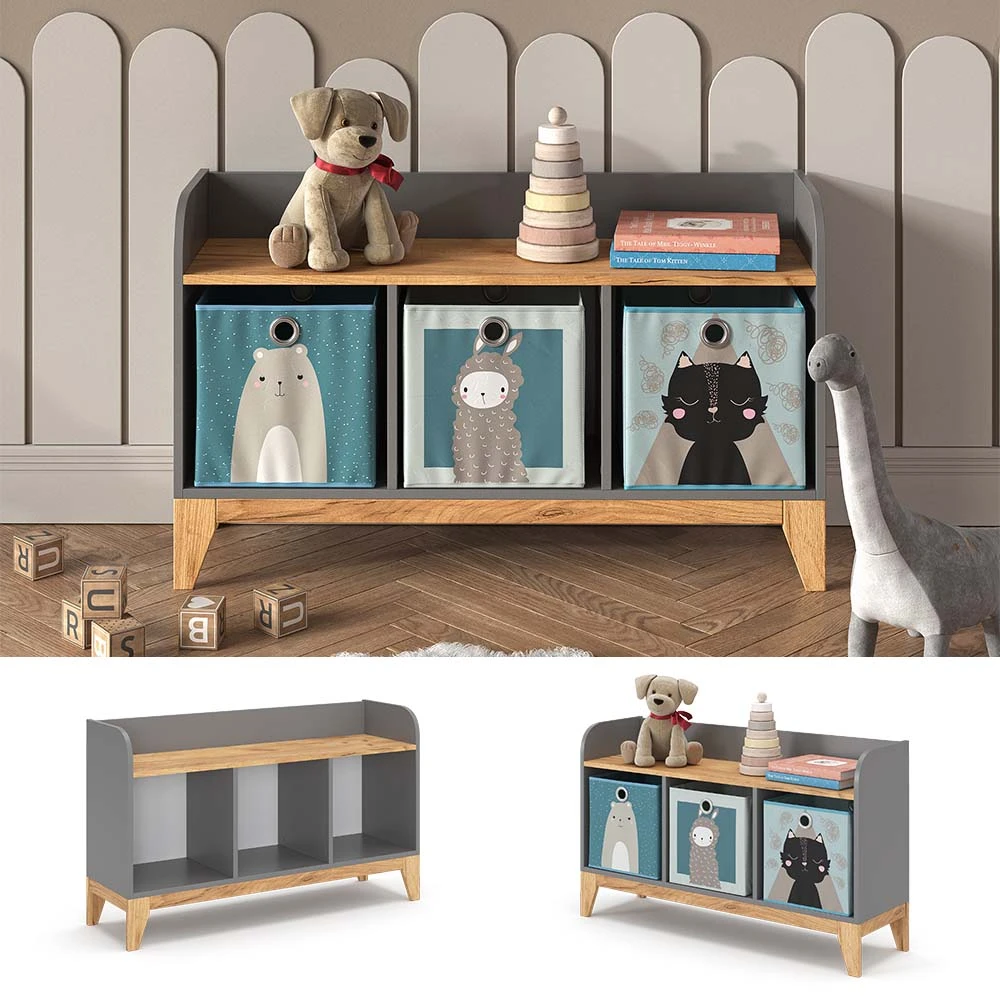 - Mit dem Spielzeugschrank „Malia“ und seinen praktischen Aufbewahrungsboxen treffen Sie eine gute Entscheidung für ein ordentliches Kinderzimmer.