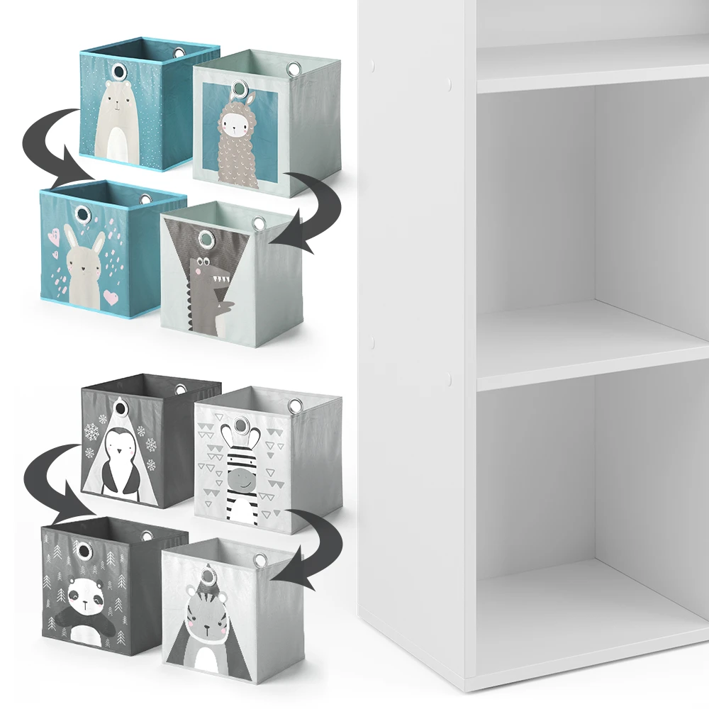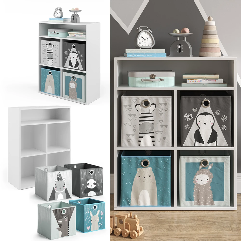 - Das breite Spielzeugregal bietet Platz für 4 kubische Boxen mit einer Größe von 30×30 cm – perfekt für die Aufbewahrung von Spielzeug.