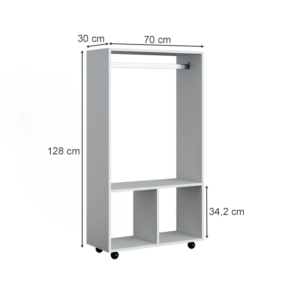 Suchen Sie nach einem vielseitigen und stilvollen Kleiderschrank, der in jede Ecke Ihres Hauses passt? Dann ist der Sydney Kleiderschrank die perfekte Wahl für Sie! Dieser Flügeltürenschrank ist nicht nur perfekt für Ihr Schlafzimmer, sondern auch als Garderobenschrank oder Wohnzimmerschrank. Der skandinavische Stil und die praktischen Fächer sorgen dafür, dass Sie alles in Ordnung halten können, egal welche Art von Kleidung oder Gegenstände Sie darin aufbewahren. Darüber hinaus ist der Sydney Kleiderschrank auf Rädern leicht zu bewegen und kann problemlos mit anderen Möbelstücken kombiniert werden. Holen Sie sich noch heute den Sydney Kleiderschrank – Sie werden begeistert sein, wie viel Stauraum er bietet!