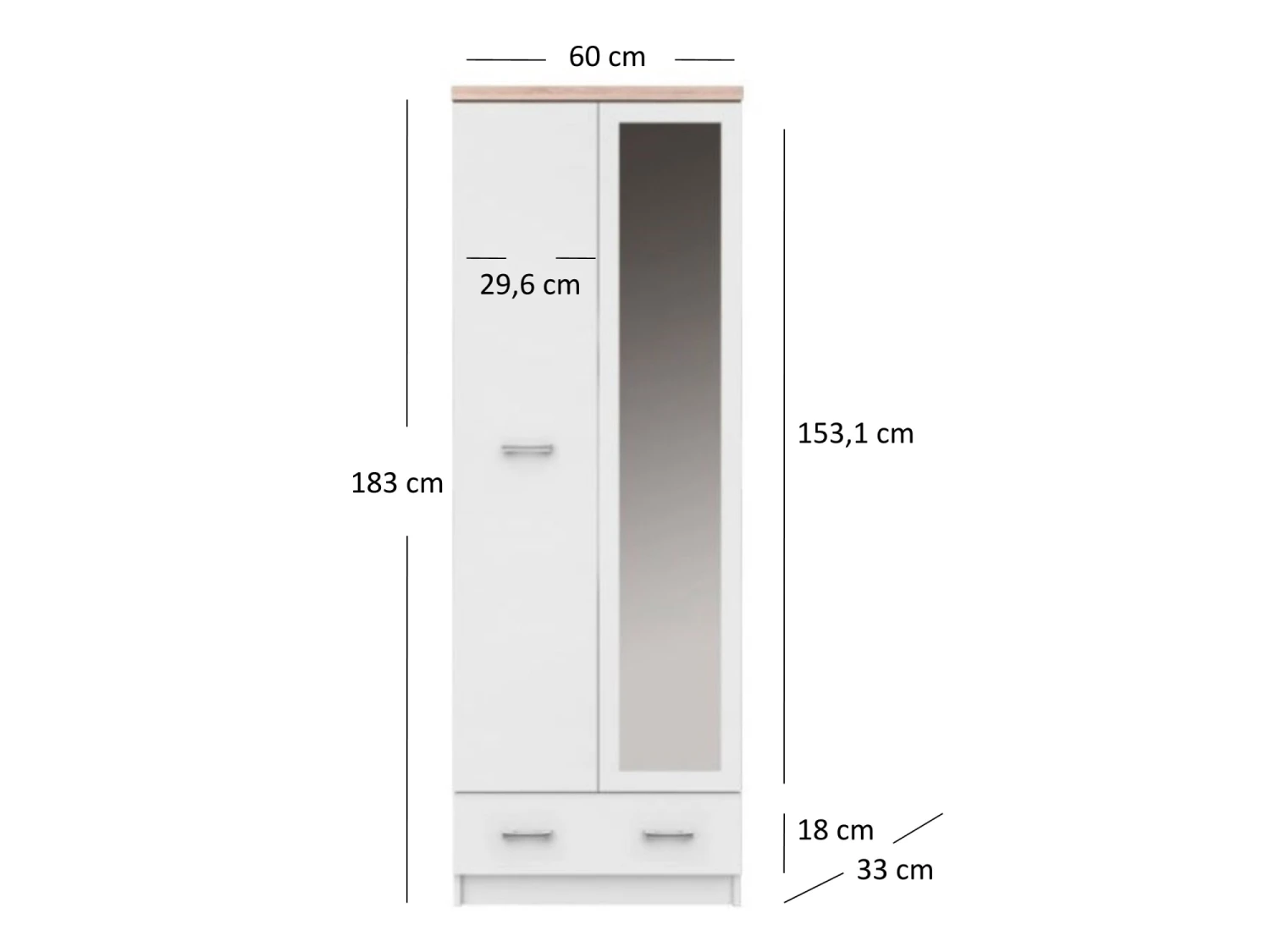 60 x 183 x 33 cm (BxHxT)