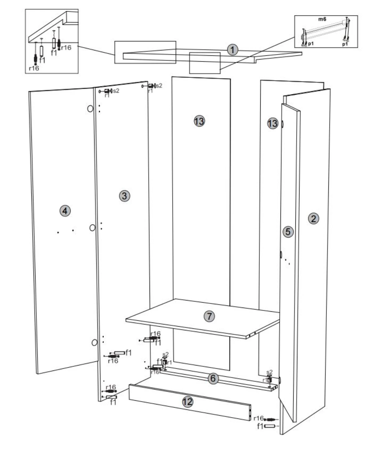 LIEFERUMFANG: Kleiderschrank, Montageanleitung, Montagematerial, Spiegel