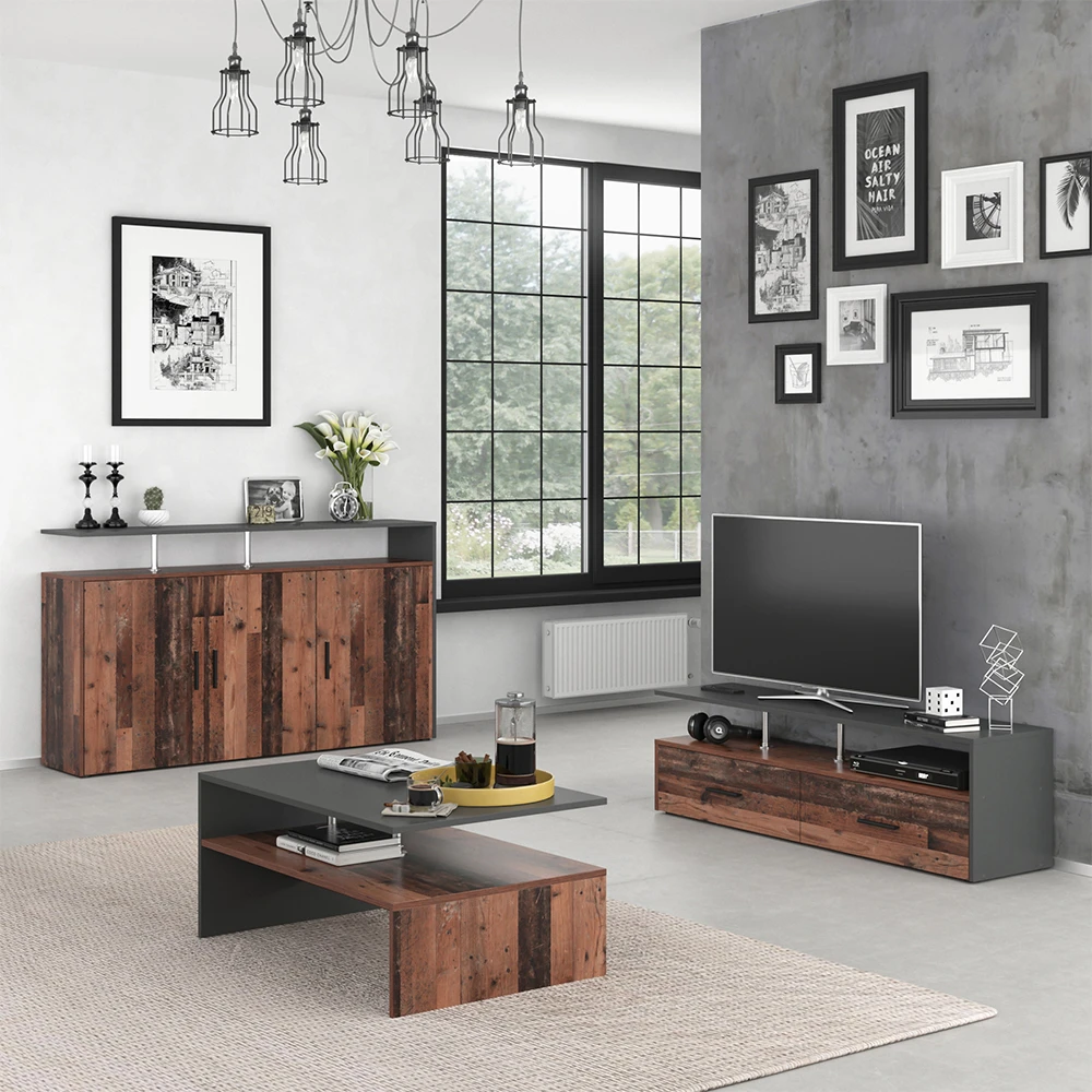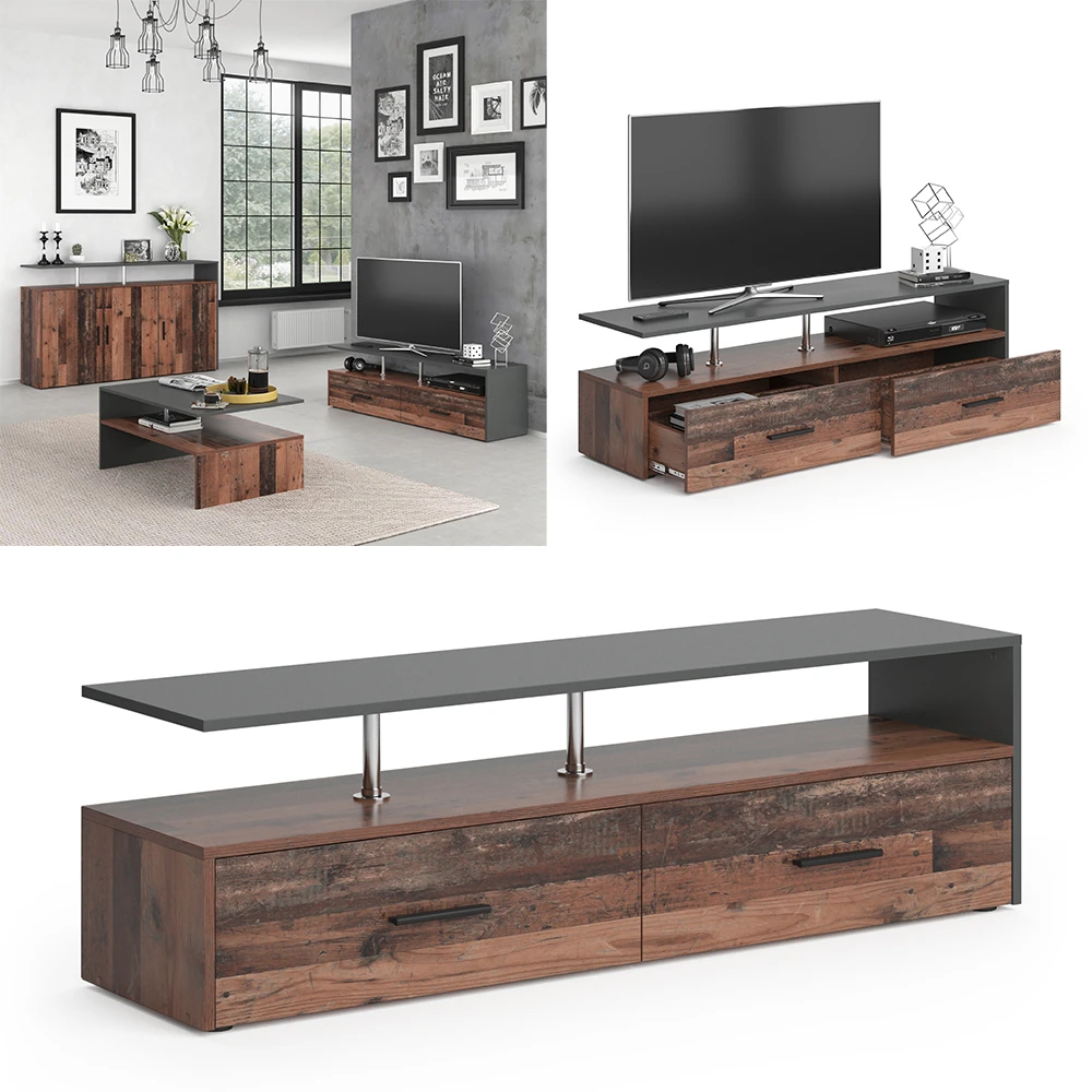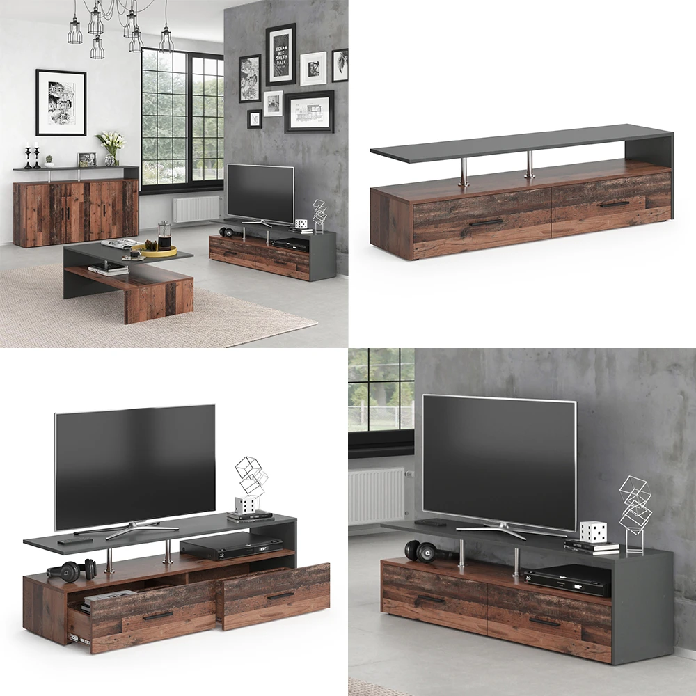 - MATERIAL: Das TV-Board besteht aus pflegeleichter Spanplatte 16 mm, mit einer Melaminharzbeschichtung.
