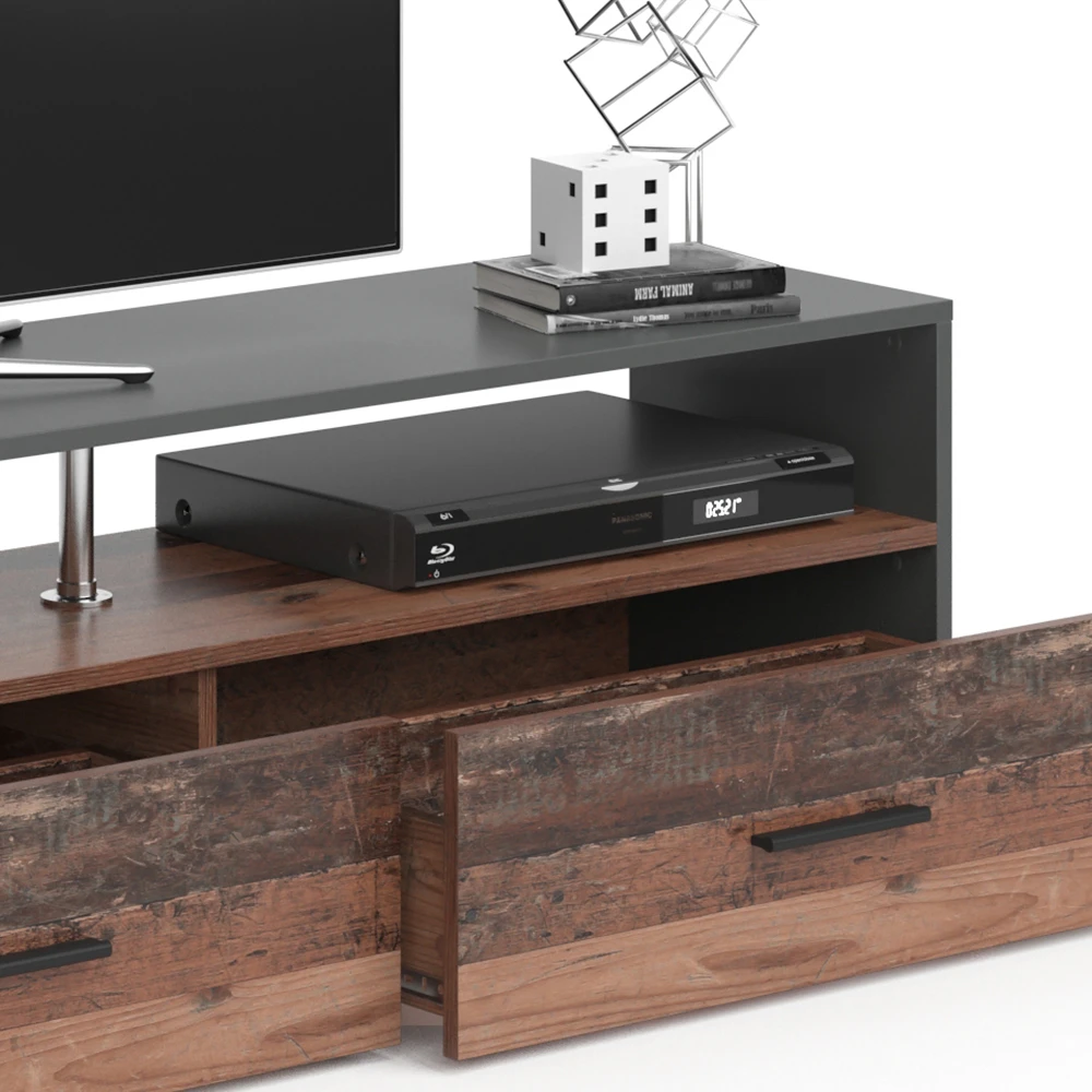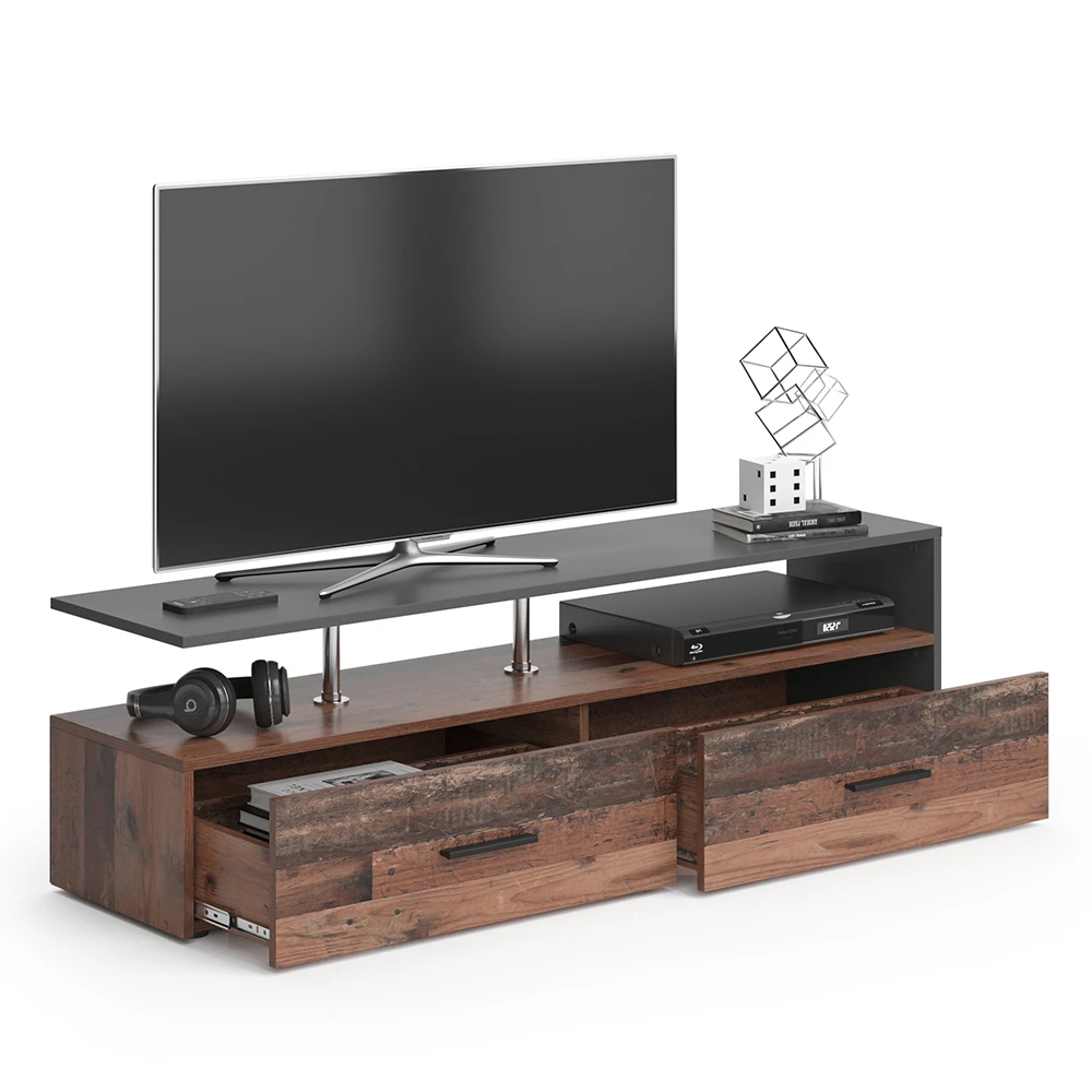 - Der Fernsehtisch bietet mit 2 Schubladen und offenen Regalen viel Stauraum für das Wohnzimmer und ist zugleich eine stylische Ergänzung.