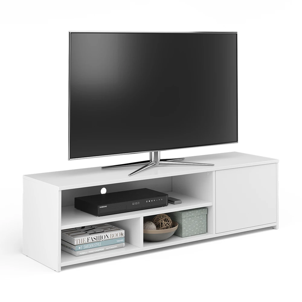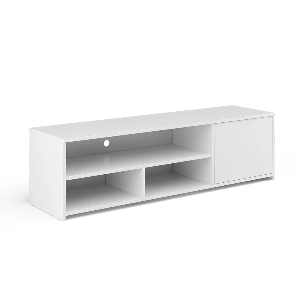 - Der Fernsehtisch bietet 3 offene Fächer und 1 Tür, um viel Stauraum für alle Ihre Multimedia-Geräte zu bieten.