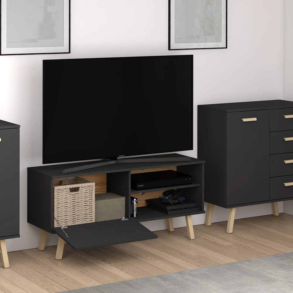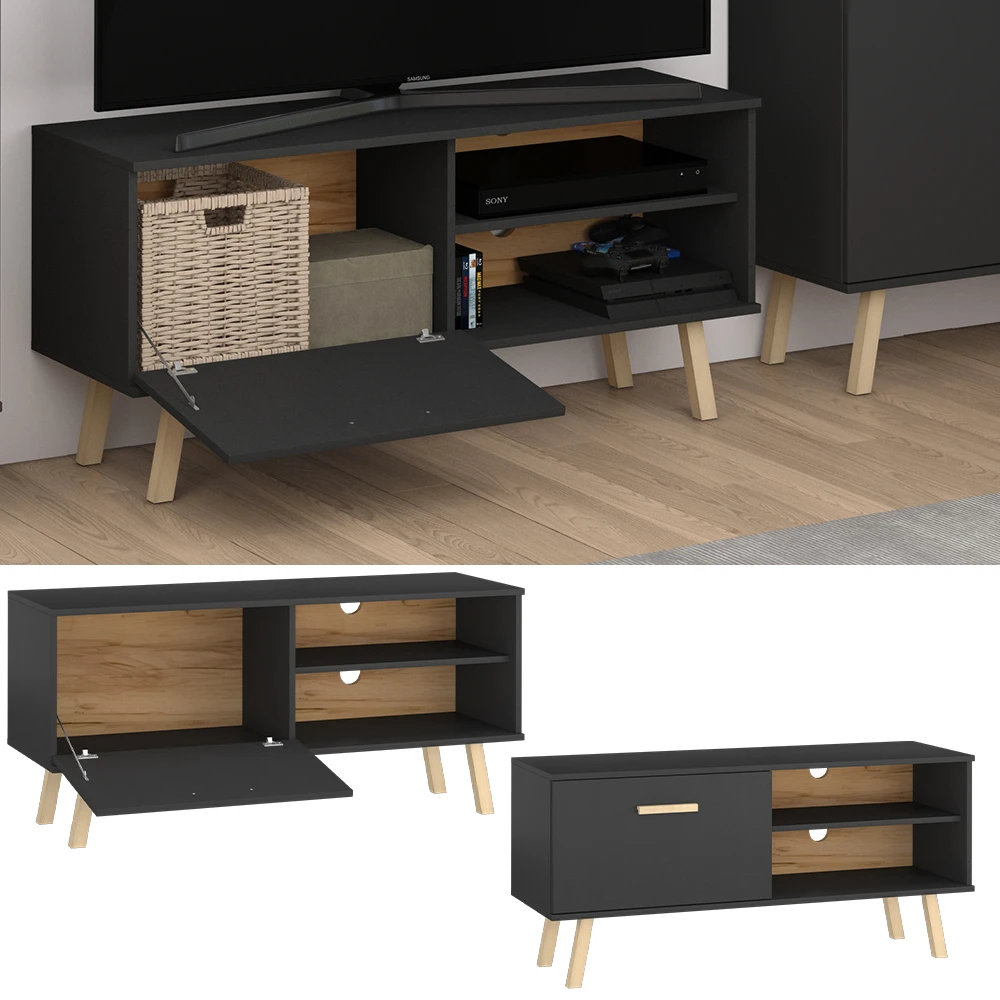 - Dank der diversen Fächer stehen Ihnen viel Stauraum und Ablagefläche für Ihren TV zur Verfügung, verpackt in einem modernen Design.
