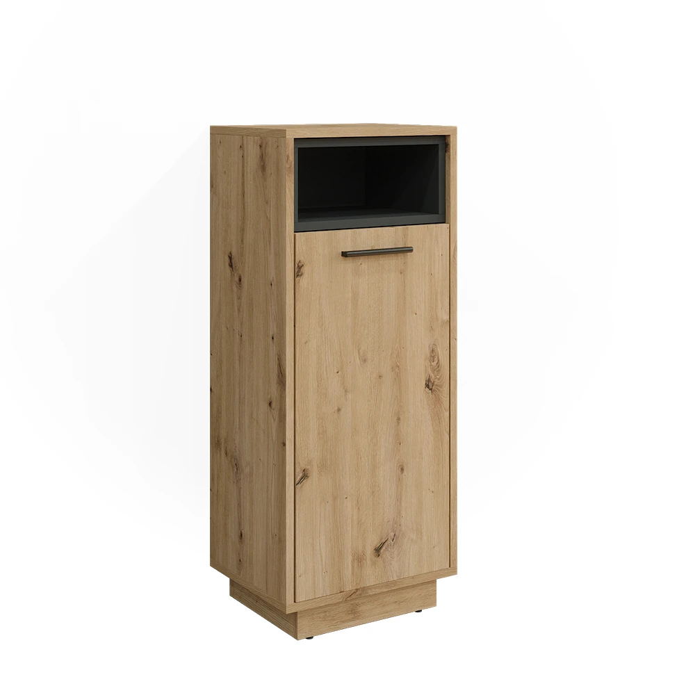 - Das Badmöbel ist ein praktischer Stauraum für alle Badutensilien. Die Flügeltür und die offene Ablage bieten ausreichend Platz für alles, was Sie im Bad benötigen.